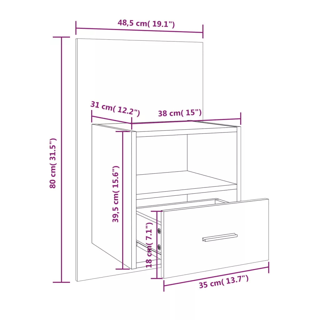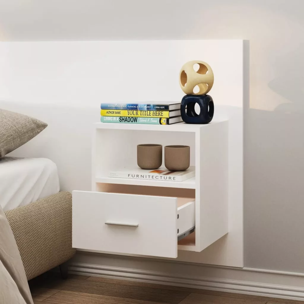Ezek a falra szerelhető éjjeliszekrények tökéletesek otthonába a hely maximális kihasználására és a padló tisztán tartására. Falra szerelhető kialakítás: Ez a lebegő éjjeliszekrény falra szerelhető, így extra tárolóhelyet biztosít. Ezáltal maximalizálhatja az alapterületet, és tisztán tarthatja a környezetét.Többfunkciós szekrény: A lebegő éjjeliszekrény ideális könyvek, gyűjtemények, dísztárgyak stb. elhelyezésére. Kombinálható az ágy fejtámlájával.Tárolófiók: A tágas fiók lehetővé teszi, hogy rendezetten tartsa a dolgait.Könnyen tisztítható anyag: A szerelt fa kivételes minőségű, sima felületű, szilárd, stabil és ellenáll a nedvességnek. A szerelt fából készült fali éjjeliszekrény könnyen tisztítható. Figyelem:A falon belüli csavar(ok) és dugó(k) nem alaptartozékok. Keressen és használjon a falának megfelelő csavar(oka)t és dugó(ka)t. Ha bizonytalan, kérje szakember tanácsát. Gondosan olvassa el és kövesse a használati utasítás minden lépését.