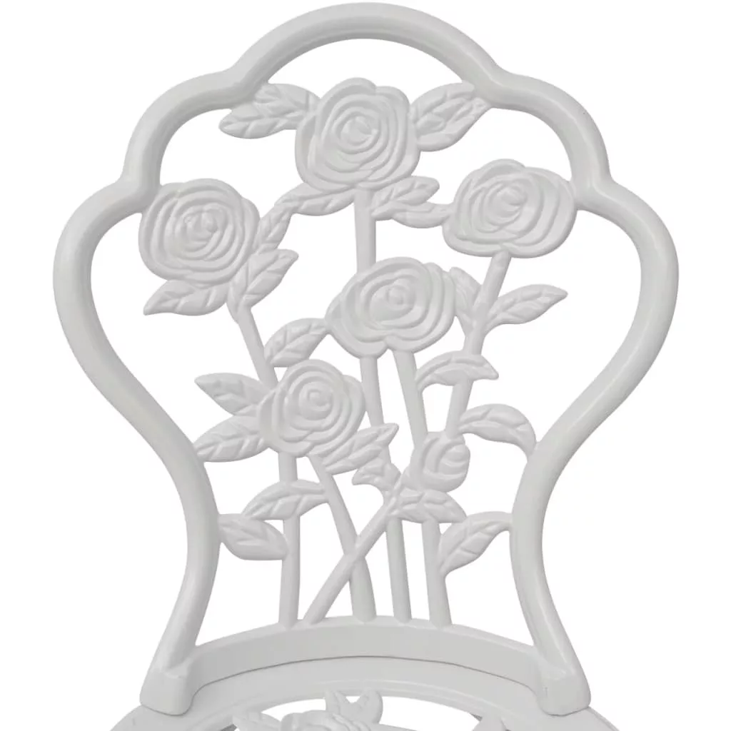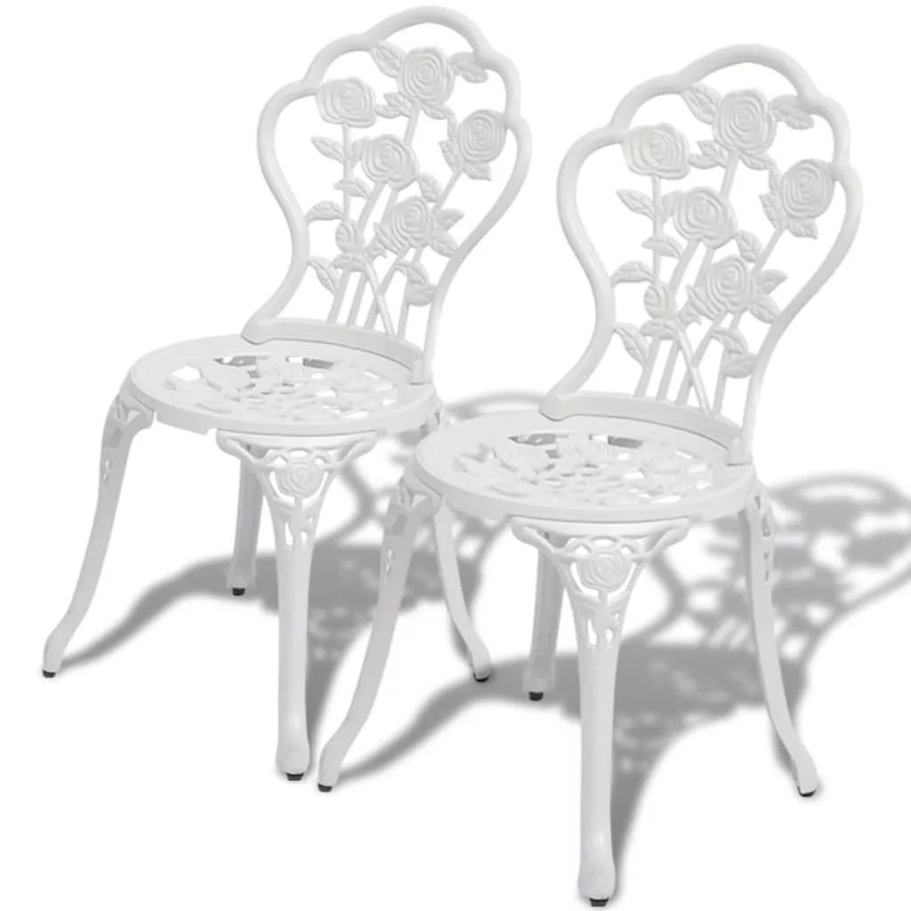 Ez a virágos díszítőelemekkel rendelkező bisztró szett nagyszerű kiegészítője lehet kertjének, verandájának vagy erkélyének. Élvezetes a székeken helyet foglalva egy csésze teát szürcsölgetni a barátainkkal. Ez a bisztró szett kiváló minőségű öntött alumíniumból készült, így időjárásálló és rendkívül tartós. Öntött vas lábai tovább növelik a szett szilárdságát. Kidolgozott virágmintájának köszönhetően romantikus hangulatot csempész bármely kertbe, verandára vagy melegházba. A szállítmány 2 db bisztró széket tartalmaz. Maximum 110 kg ülésenként.