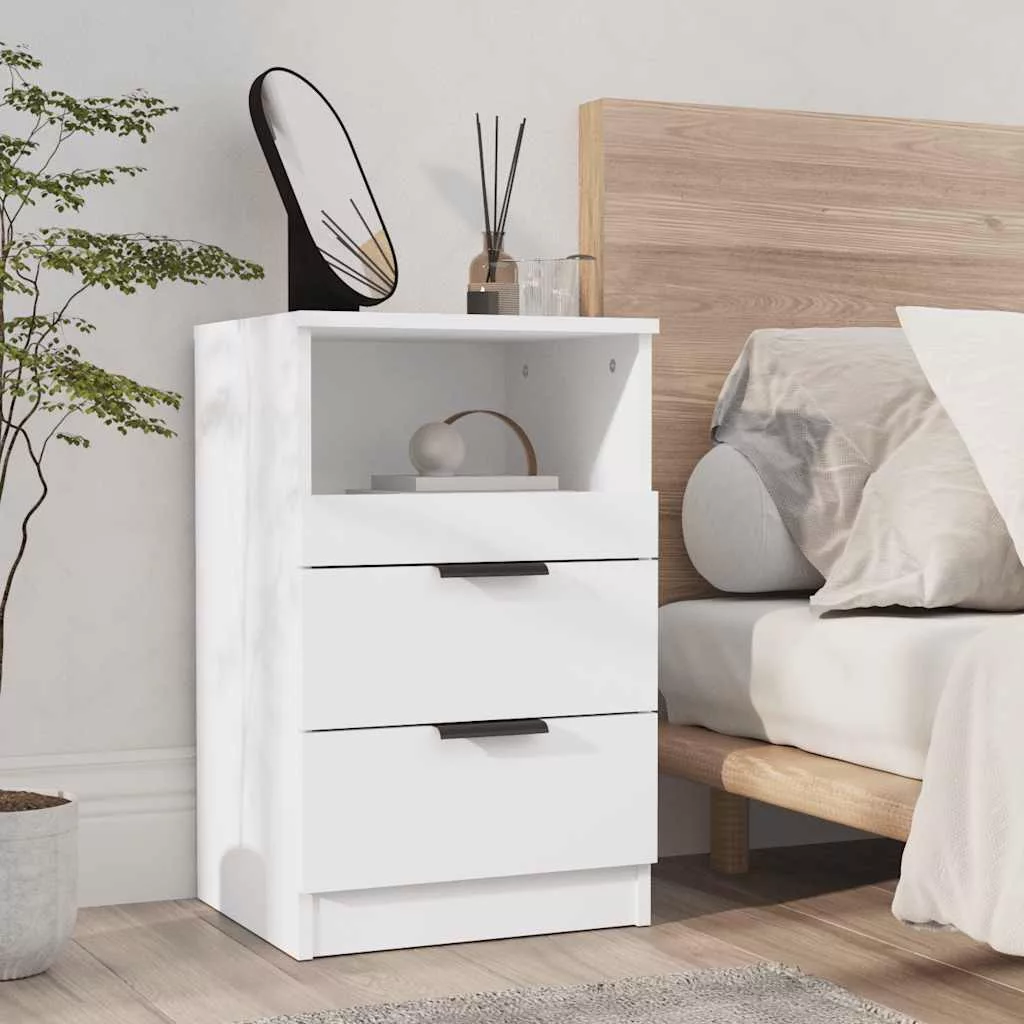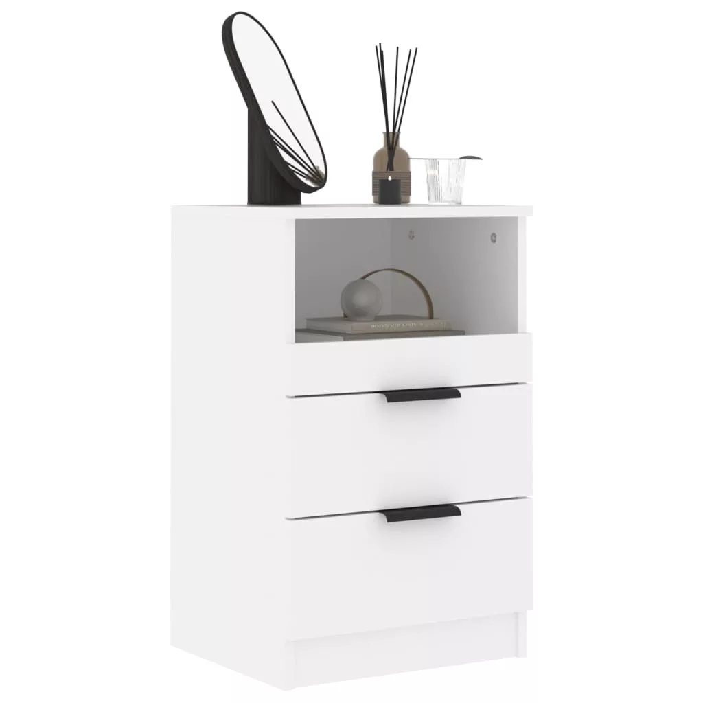 2 db fehér szerelt fa éjjeliszekrény