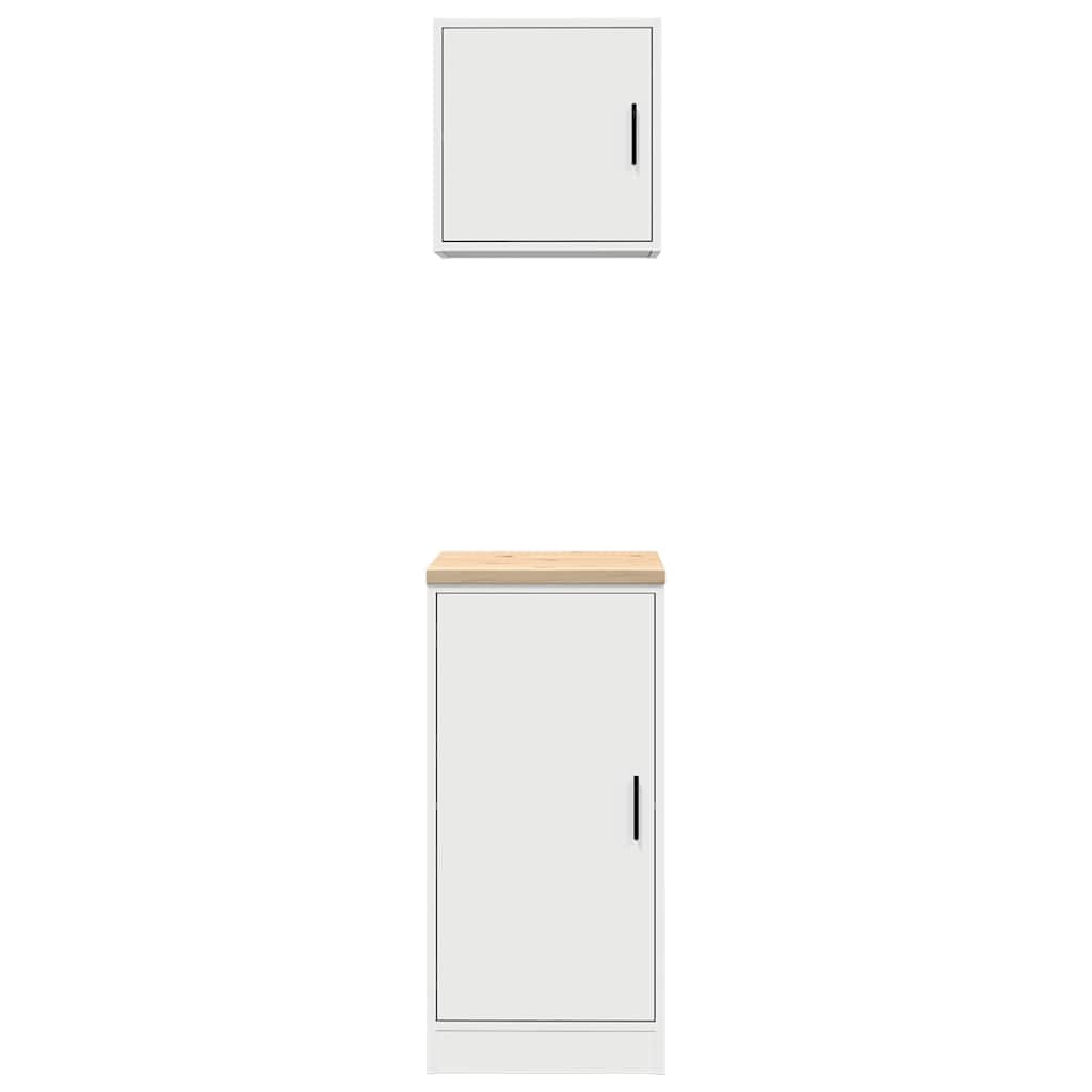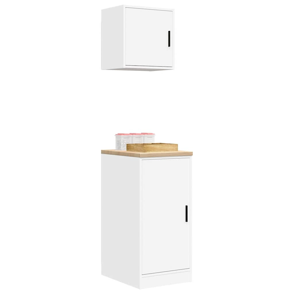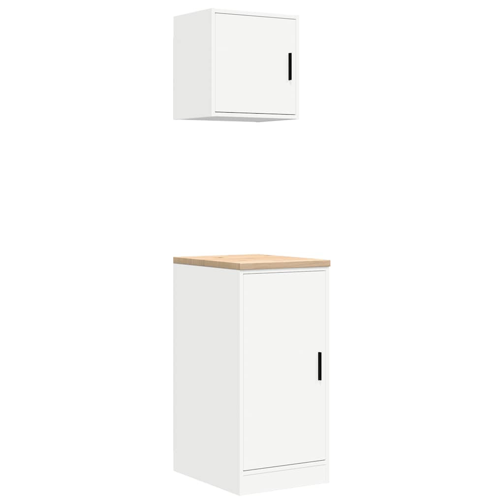2 db fehér szerelt fa garázs szekrények
