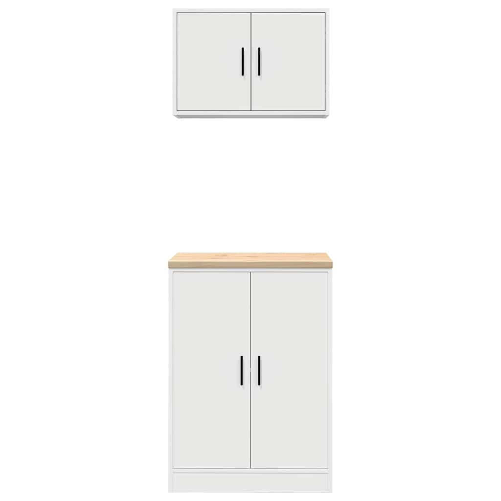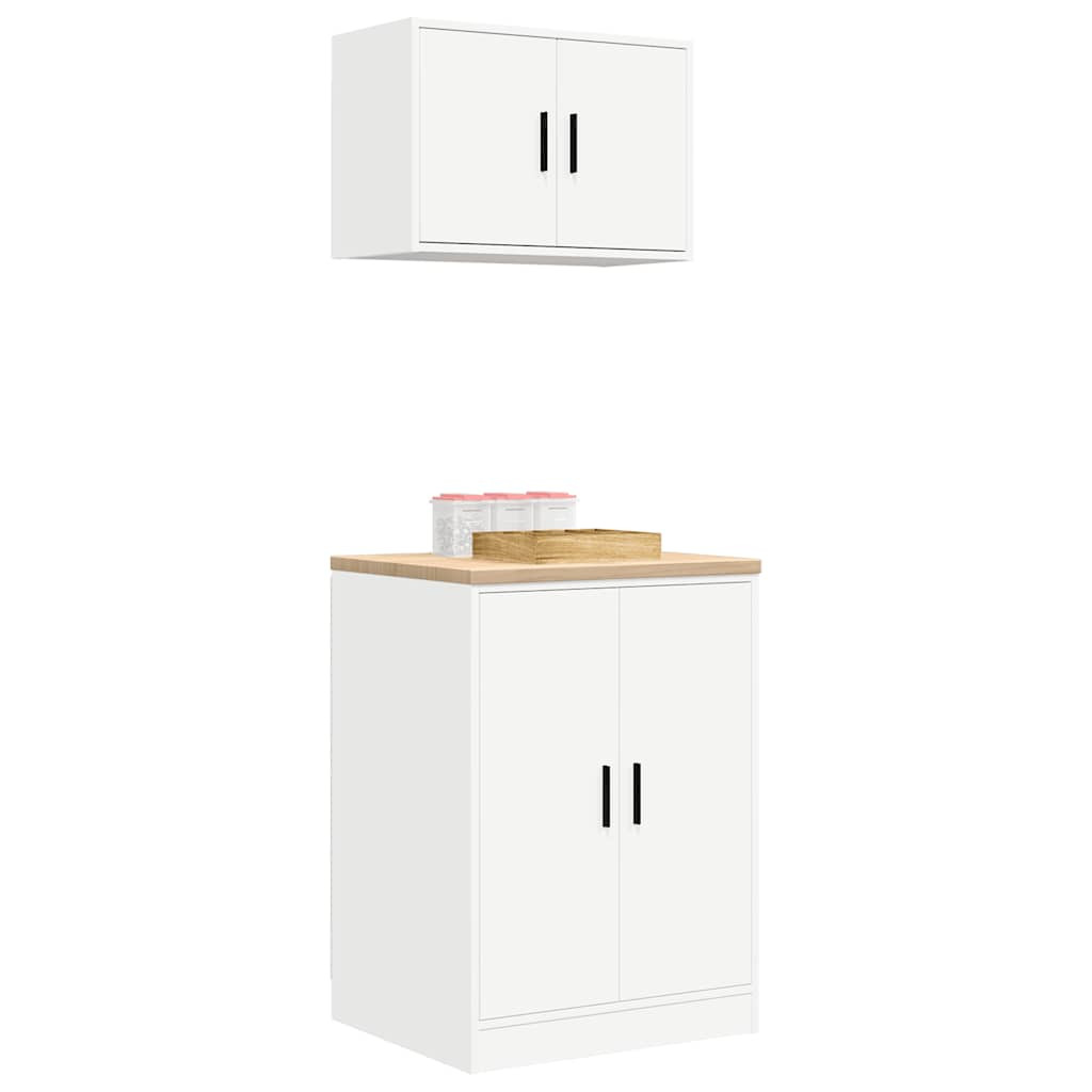 2 db fehér szerelt fa garázs szekrények