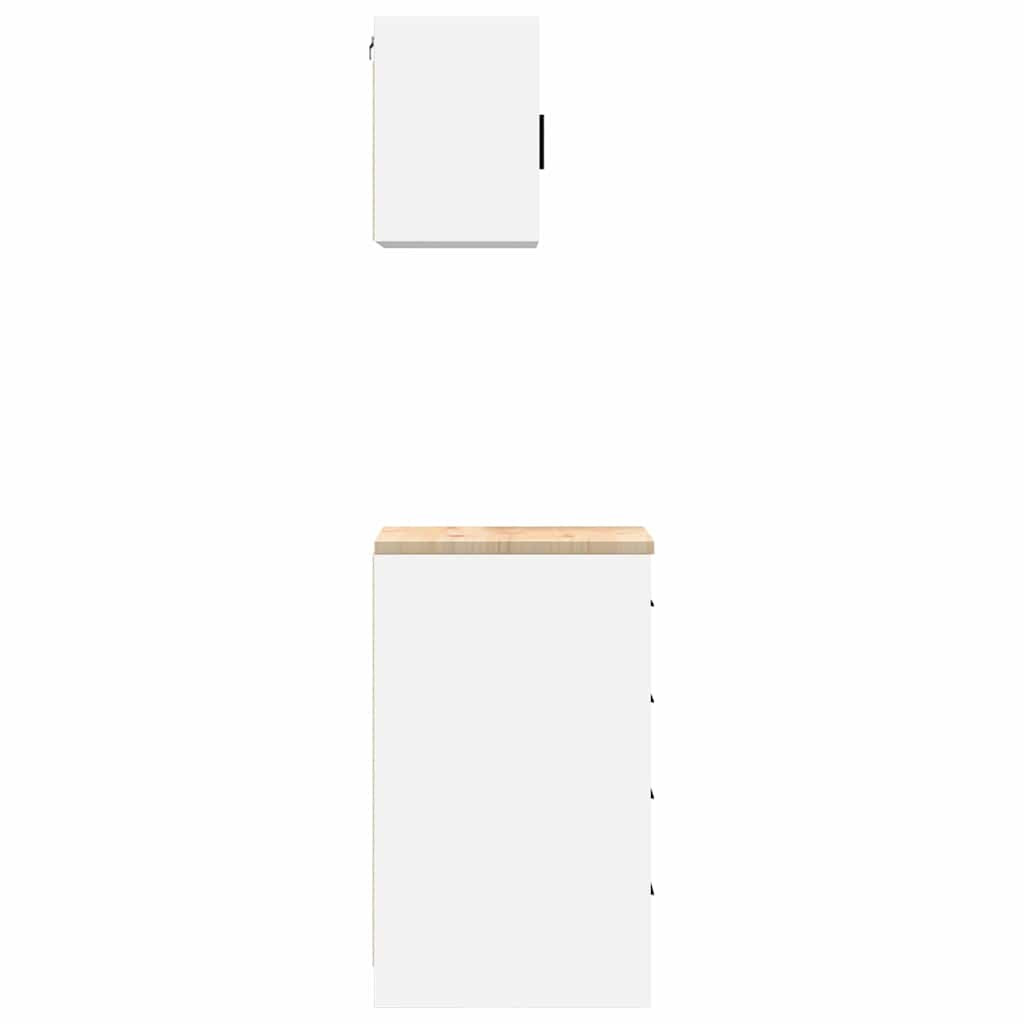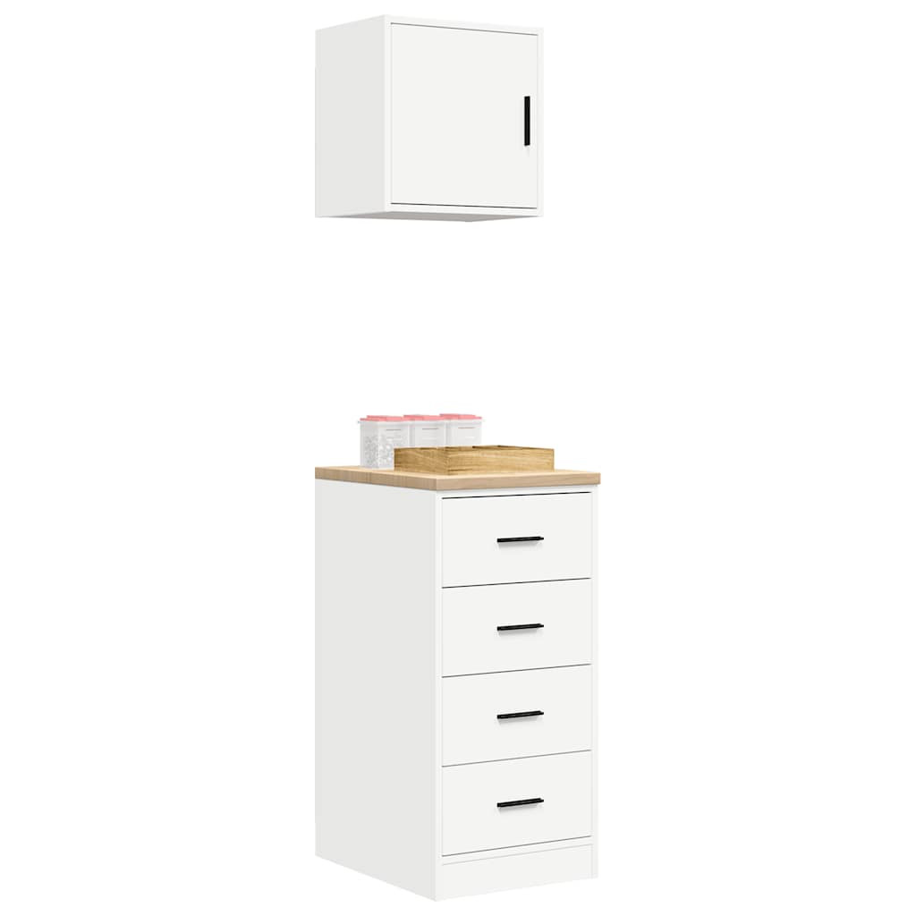 2 db fehér szerelt fa garázs szekrények