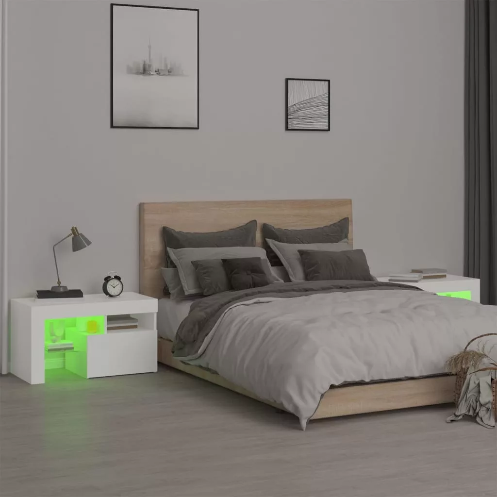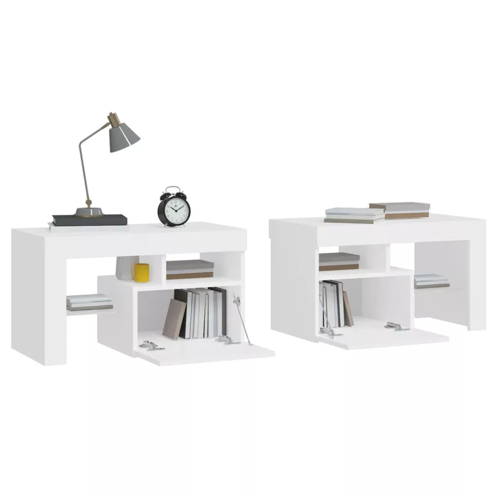 2 db fehér színű LED-lámpás éjjeliszekrény 70x36,5x40 cm
