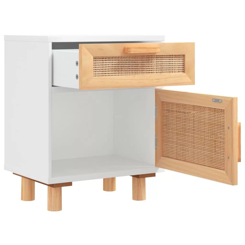 Vigyen skandináv bájt szobájába ezekkel az éjjeliszekrényekkel! Otthona praktikus és dekoratív kiegészítője lesz. Tartós anyag: A szerelt fa kivételes minőségű, sima felületű, szilárd, stabil, és ellenáll a nedvességnek.Bőséges tárolóhely: Az 1 fiókkal és 1 rekesszel felszerelt szekrény bőséges tárolóhelyet kínál alapvető kellékei kézközelben történő rendezett tárolásához. Emellett a természetes rattan szövésű kialakítás még szebbé teszi.Tömör fenyőfa lábak: A falábak természetes és kellemes megjelenést kölcsönöznek az éjjeliszekrénynek, és a stabilitást is biztosítják. Bármilyen környezetbe illeni fog.Stabil lap: A kisszekrény masszív lapja tökéletes helyet nyújt cserepes növények, képkeretek és egyéb dísztárgyak elhelyezésére. Megjegyzés:Az egyszerű összeszerelés érdekében minden termékhez mellékelünk összeszerelési útmutatót. Figyelem:A dőlés megakadályozása érdekében a terméket a mellékelt tartóelem segítségével rögzíteni kell a falhoz.