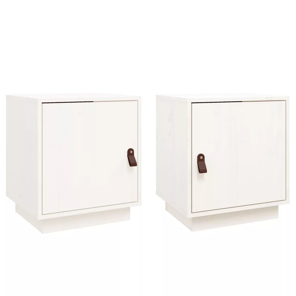 2 db fehér tömör fenyőfa éjjeliszekrény 40 x 34 x 45 cm