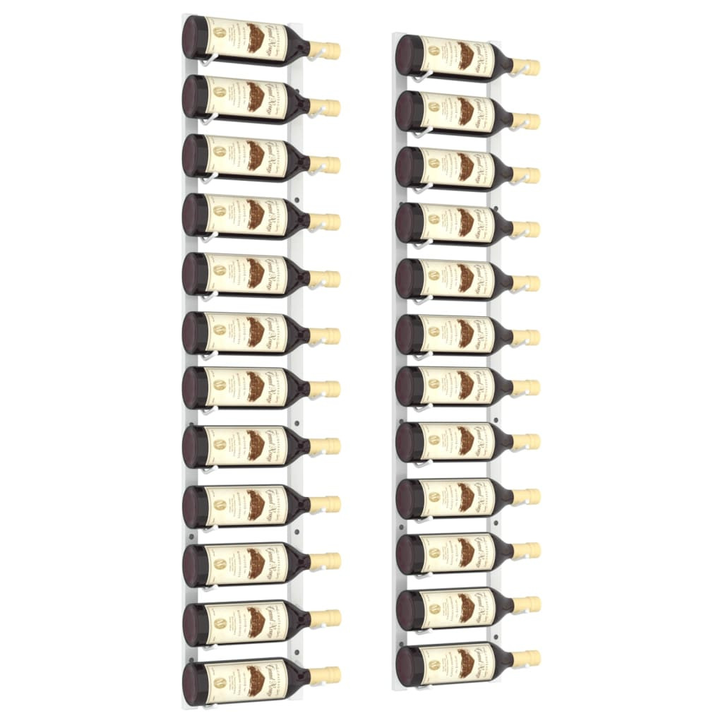 2 db fehér vas falra szerelhető bortartó állvány 12 palacknak