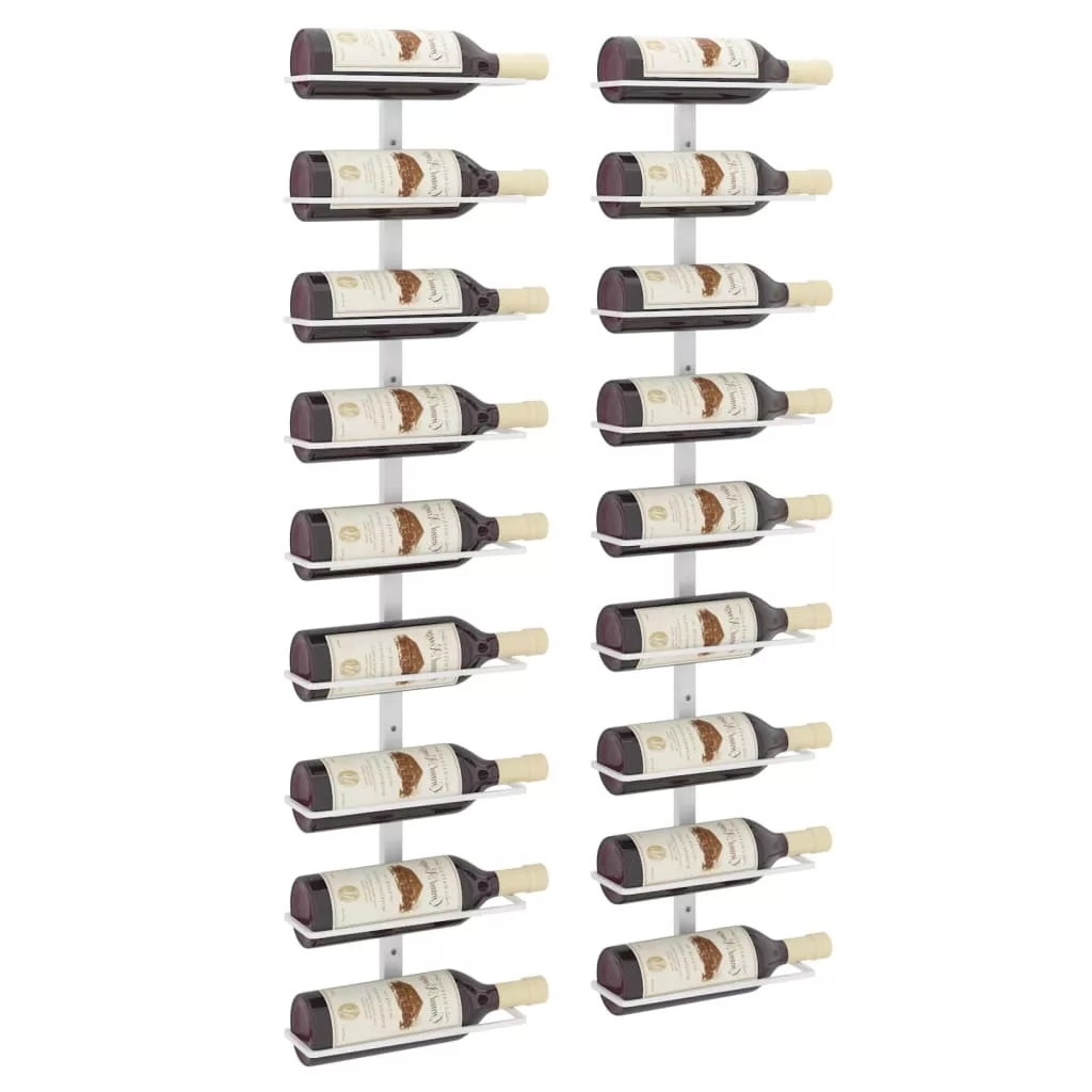 2 db fehér vas falra szerelhető bortartó állvány 9 palacknak