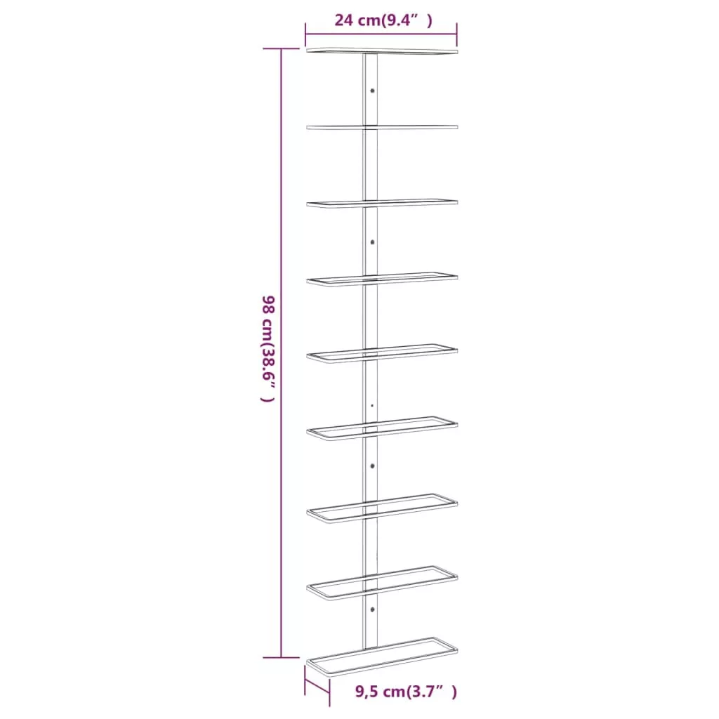 Ez a falra szerelhető borállvány kényelmesen használható, és tökéletes választás kedvenc borai rendezésére és tárolására. Maximum 9 db borospalack tárolására alkalmas. Modern dizájn: Ez a bortartó állvány divatos kiegészítője lesz modern konyháknak, kamráknak és bároknak.Kiváló minőség: A palacktartó szóróbevonatos vasból készült, így rendkívül tartós és könnyen karbantartható! Ezenkívül nagyon sima a felülete, ezért nem karcolja össze a palackokat.Könnyű összeszerelés: A szeszesital-állvány a mellékelt szerelvényekkel könnyen falhoz erősíthető.