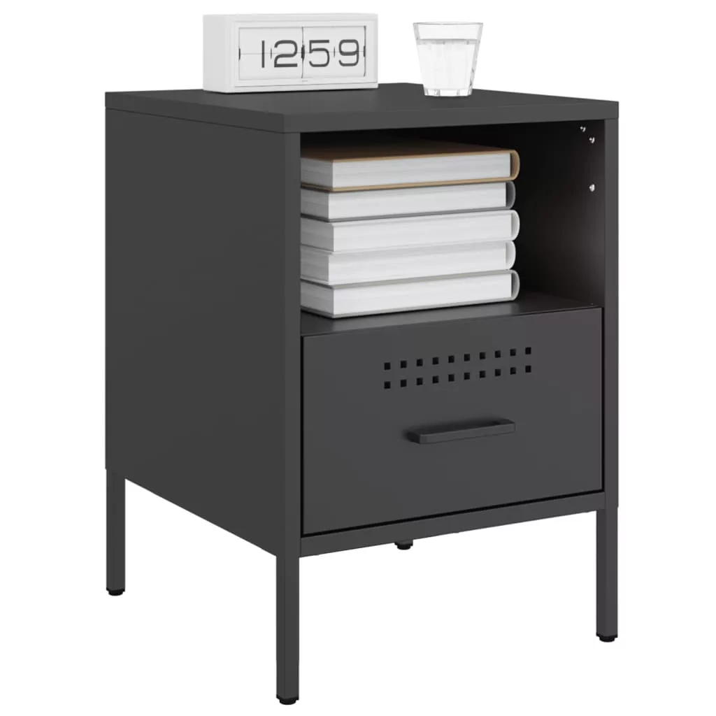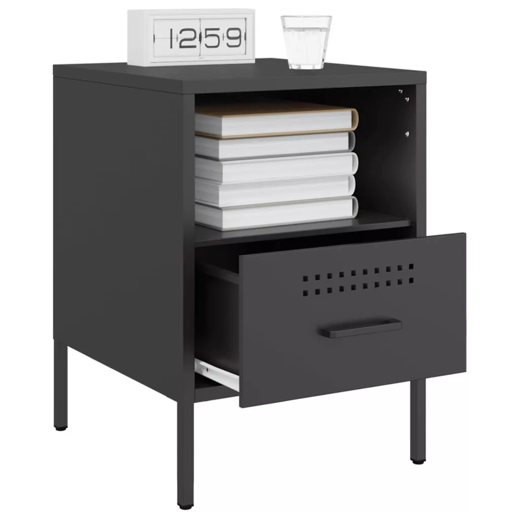 2 db fekete acél éjjeliszekrény 36 x 39 x 50,5 cm