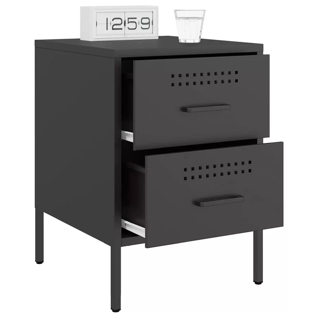 2 db fekete acél éjjeliszekrény 36 x 39 x 50,5 cm