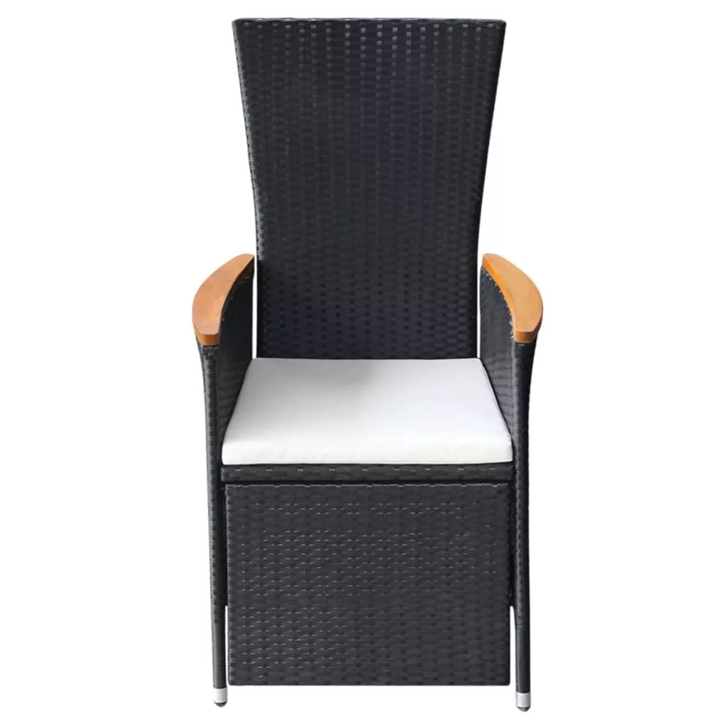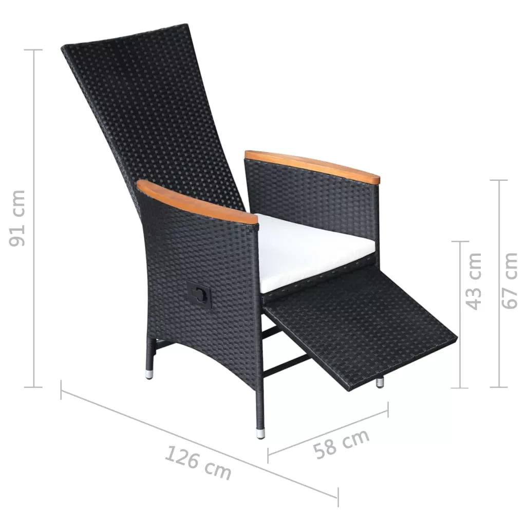 2 db fekete dönthető háttámlás polyrattan kerti szék párnával