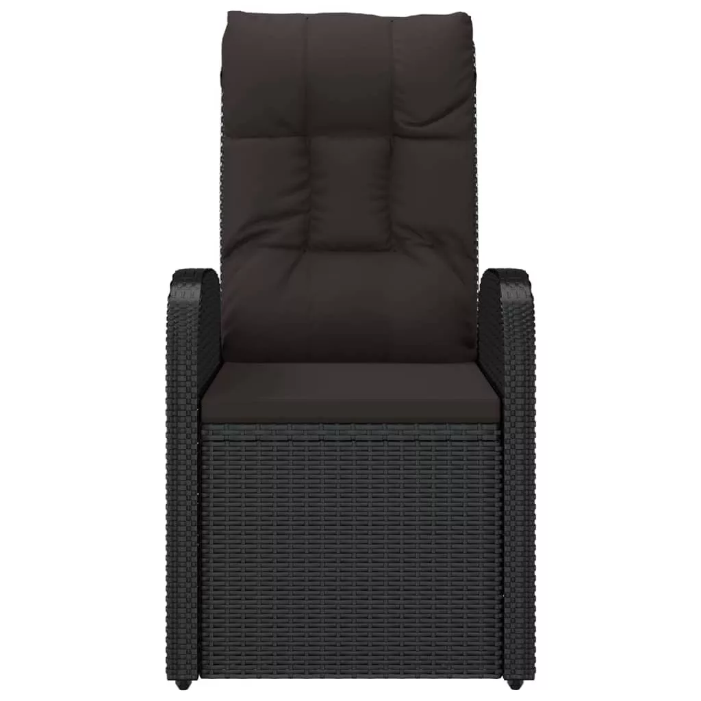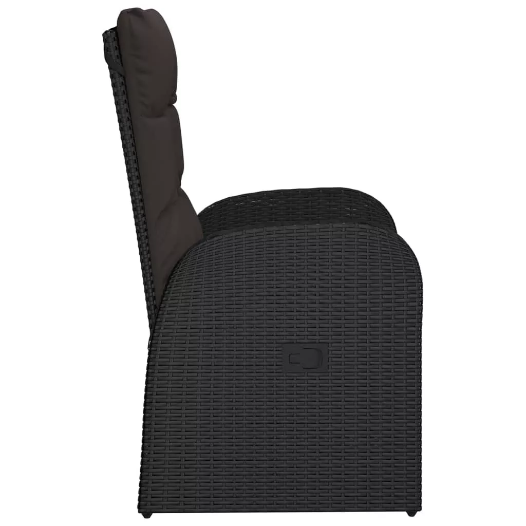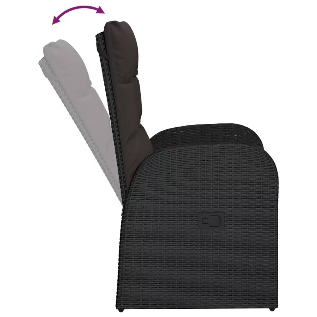 2 db fekete dönthető polyrattan kerti szék párnával