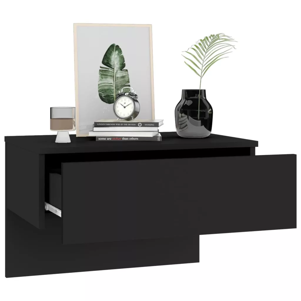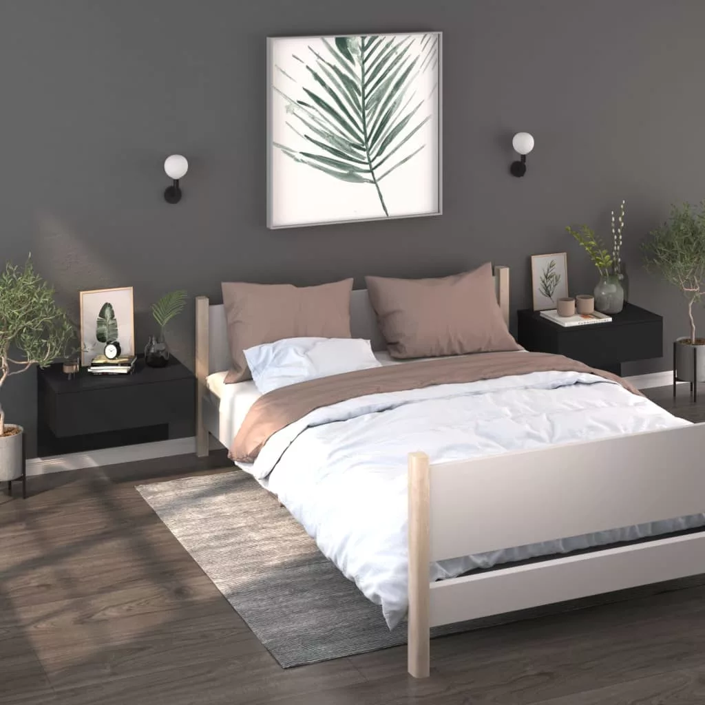 2 db fekete falra szerelhető éjjeliszekrény