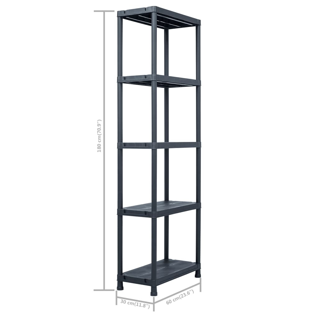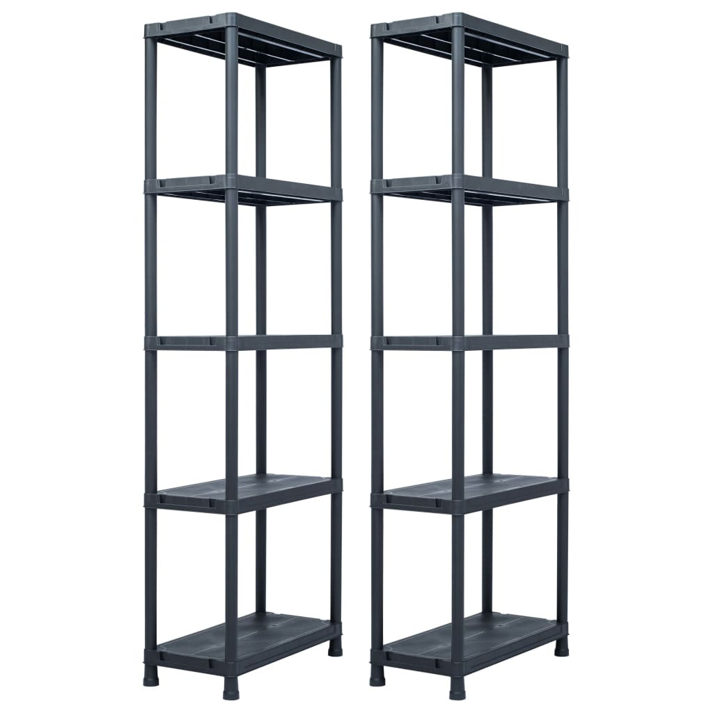 2 db fekete műanyag tároló polc 125 kg 60 x 30 x 180 cm