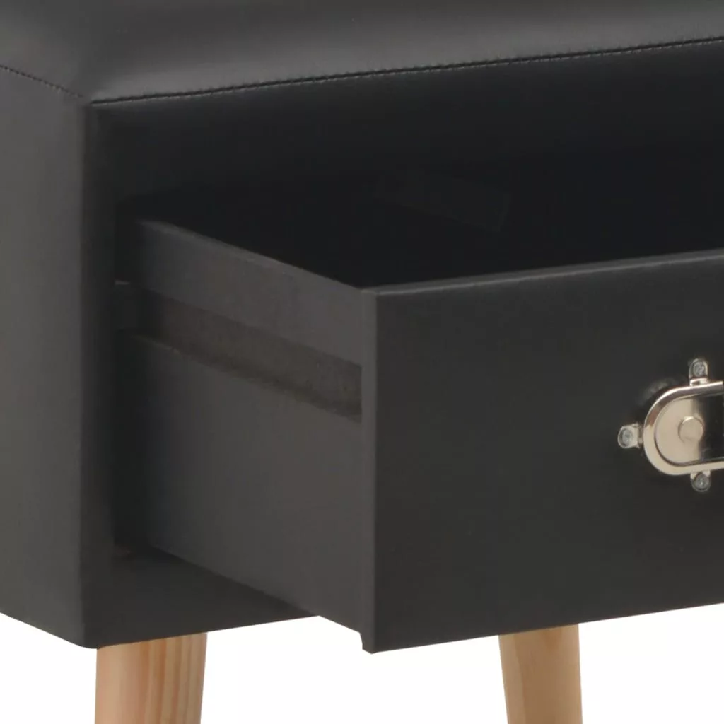 Ez az éjjeliszekrény elegáns dizájnjával kiváló kiegészítője lehet otthonának. Ez a tömör fenyőfából és műbőrből készült éjjeliszekrény rendkívül tartós és stabil. A műbőr szekrény finoman betolható fiókkal rendelkezik, és elegendő helyet biztosít kisebb tárgyak rendezetten tartására, elérhető távolságban. Emellett, ágy melletti állványként, éjjeliszekrényként, fiókos szekrényként stb. is használható. Az éjjeliszekrény könnyen összeszerelhető. A szállítmány 2 éjjeliszekrényt tartalmaz. Maksimális 110 kg ülésenként. Legyen tudatában a nyílt tűz és más erős hőforrások kockázatának a termék környezetében.