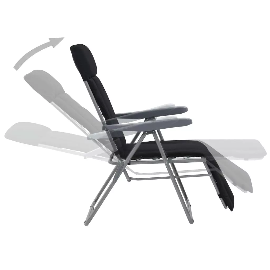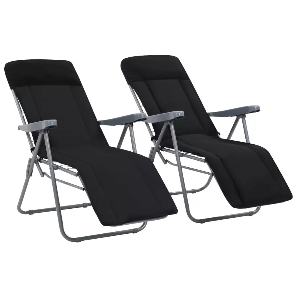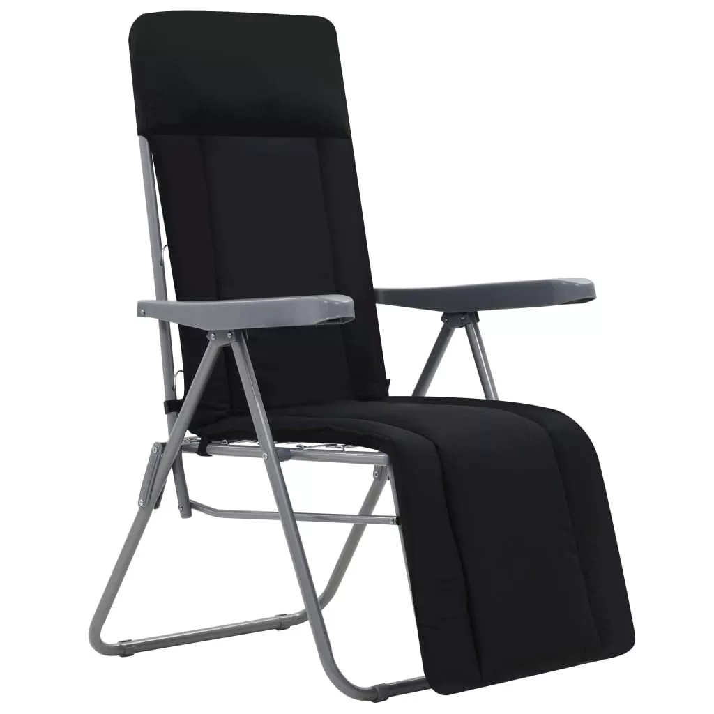 2 db fekete összecsukható kerti szék párnával