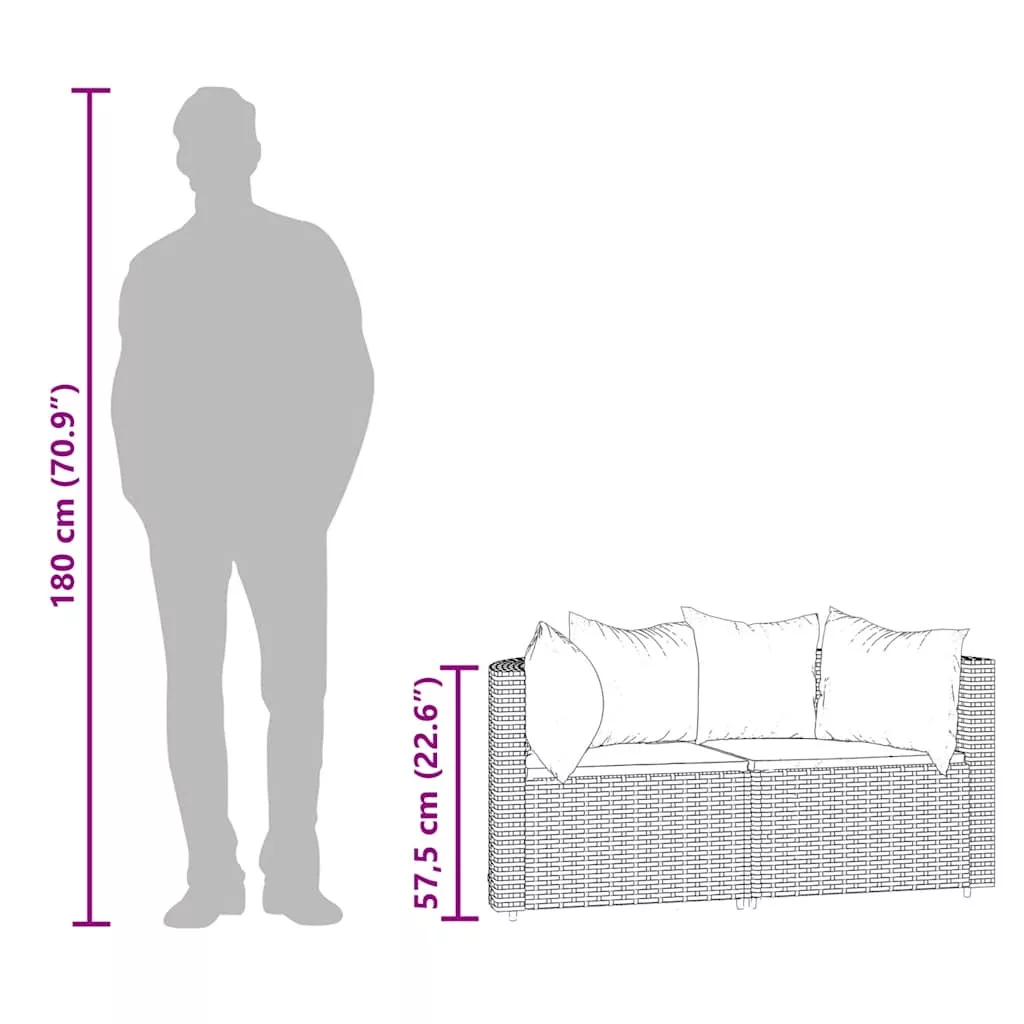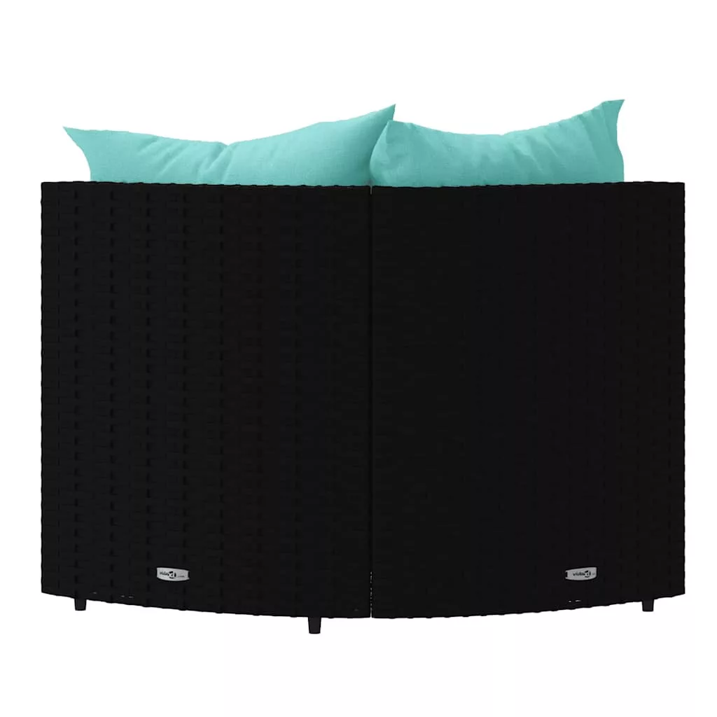 2 db fekete polyrattan kerti sarokkanapé párnákkal