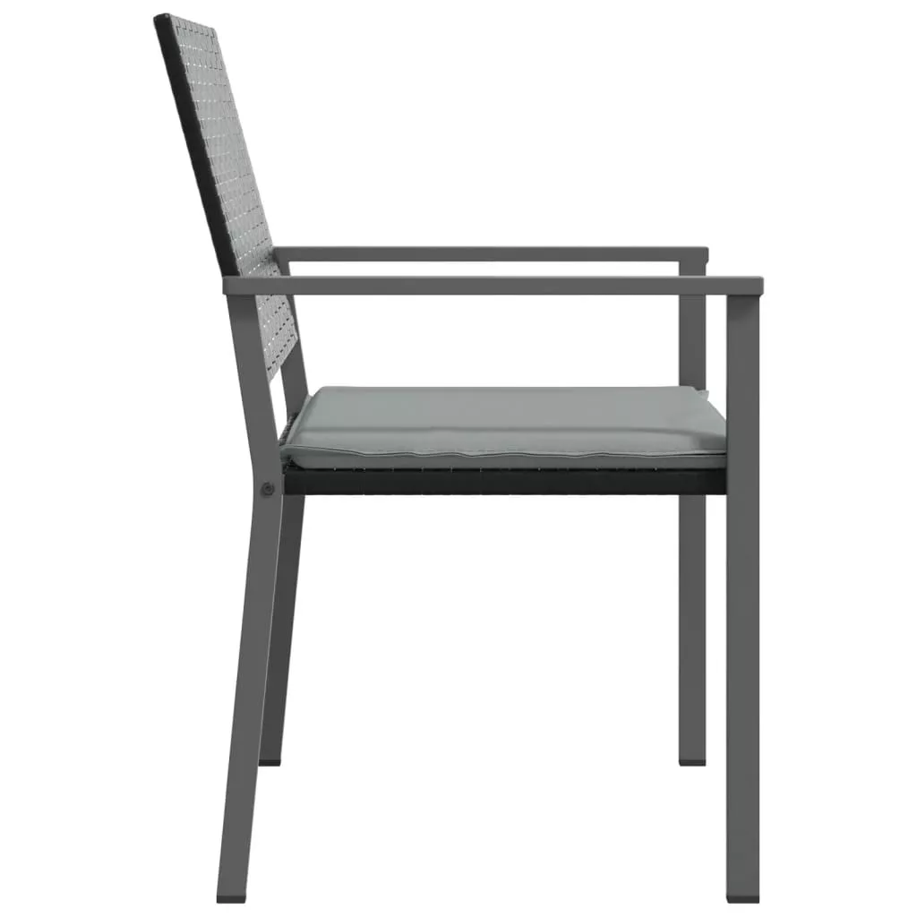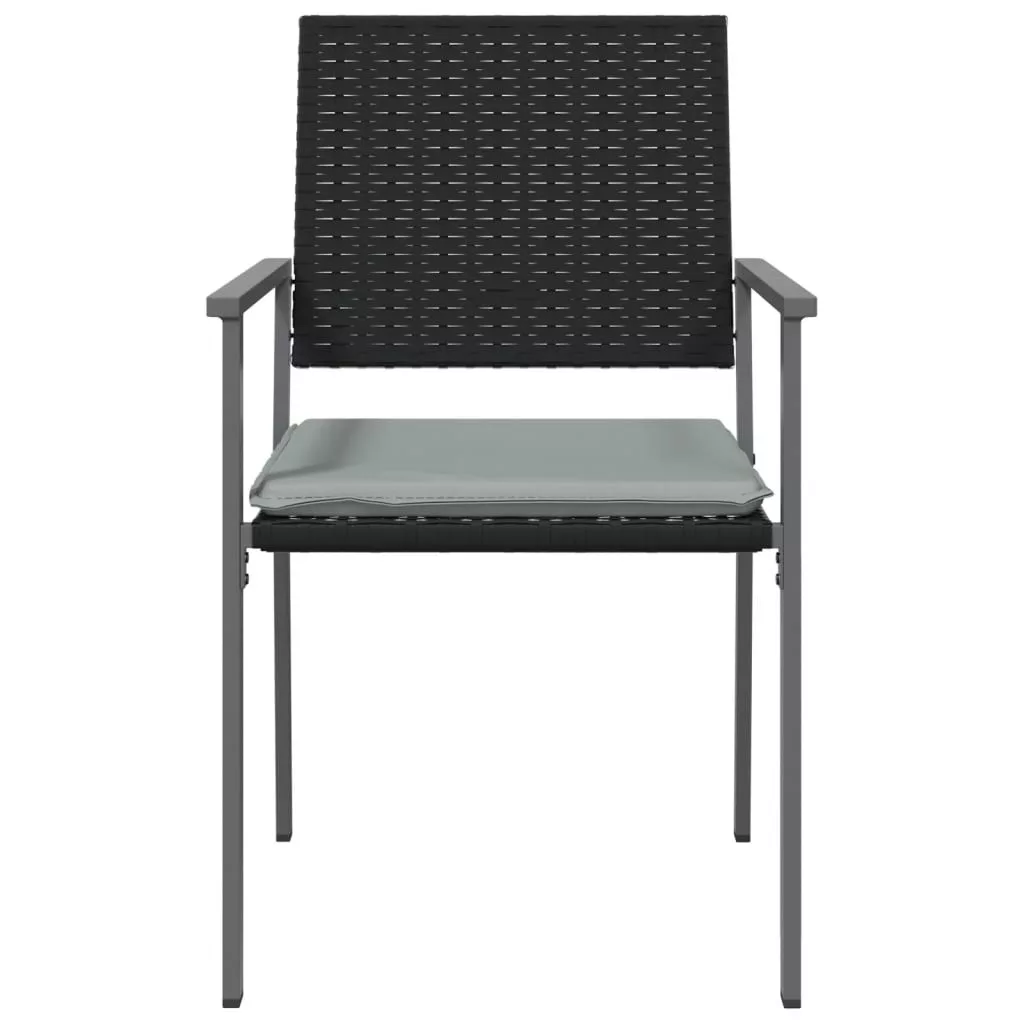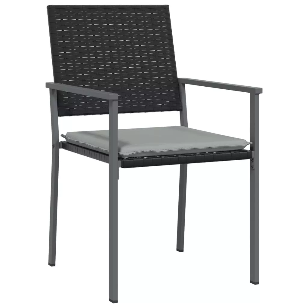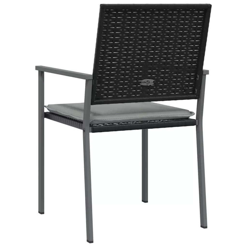 2 db fekete polyrattan kerti szék párnával 56 x 62,5 x 89 cm