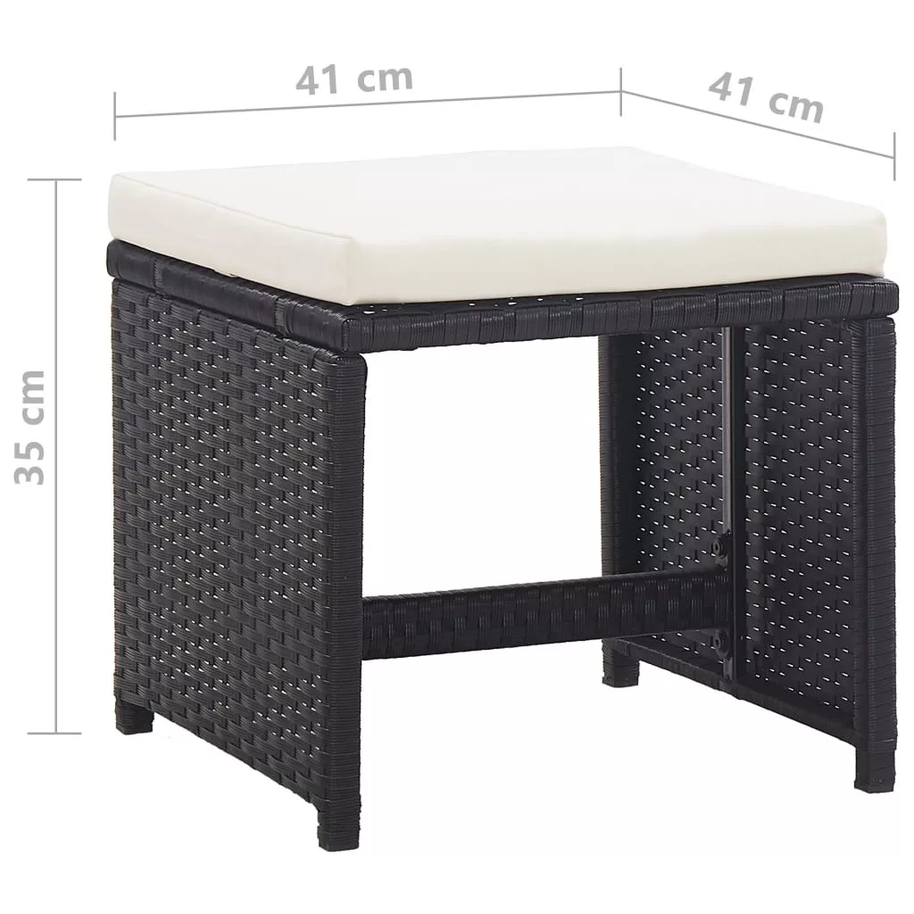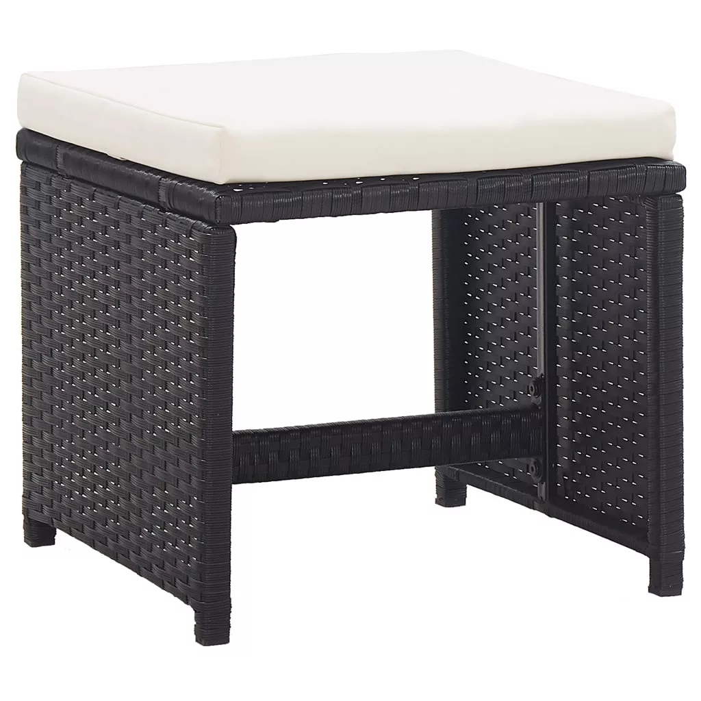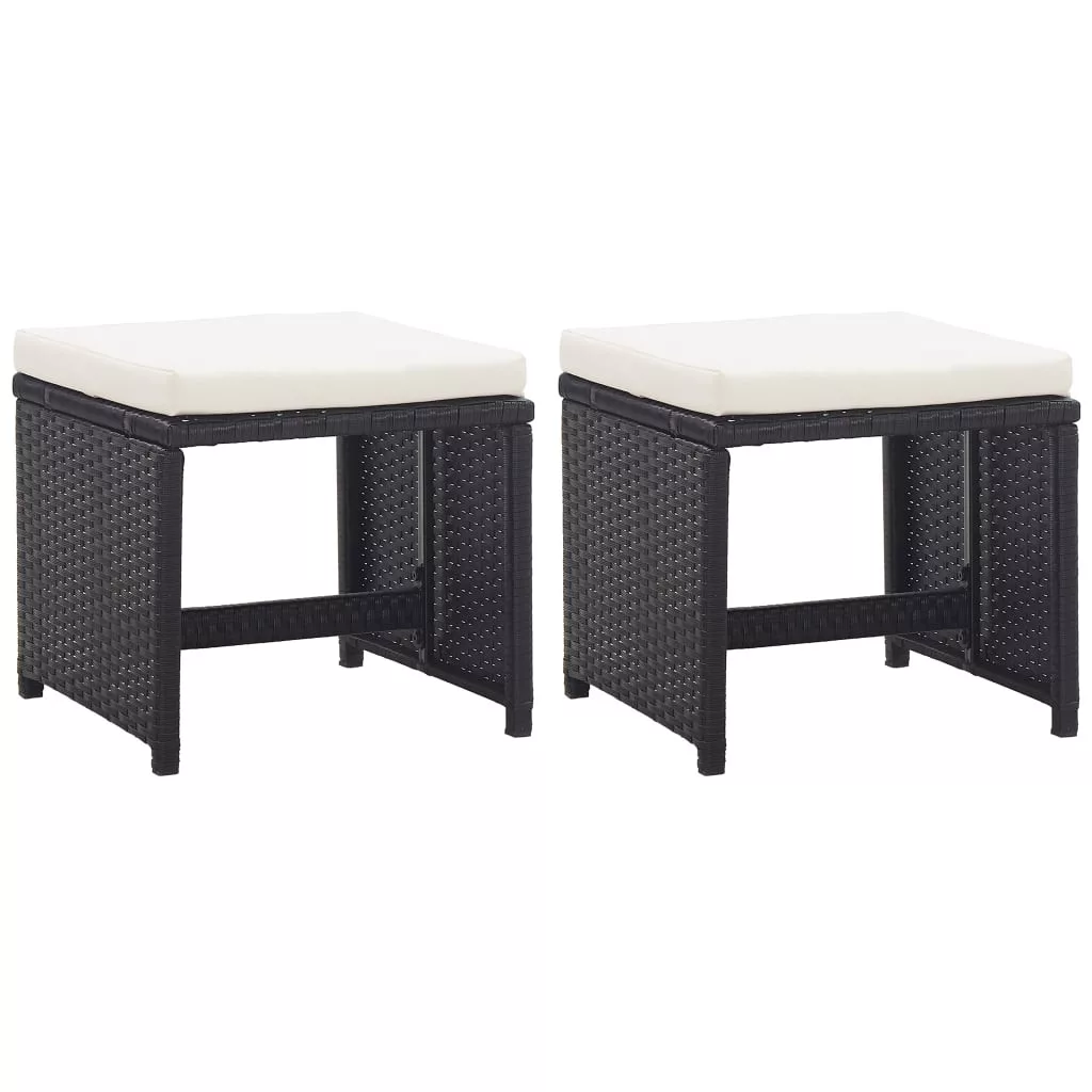 A két ülőkét tartalmazó, modern dizájnnal rendelkező szett szép és praktikus kiegészítő lesz a kertben, a teraszon vagy a verandán. A kevés karbantartást igénylő, porszórt bevonatú acélból és polyrattanból készült szerkezet szilárdságot és tartósságot biztosít, illetve ellenáll a szakadásnak és a kopásnak. A vastag párnák fokozzák az ülőhely kényelmét. Magasságuknak köszönhetően a kerti ülőkék lábtámaszként is használhatóak. Lepje meg magát egy kis pihenéssel, függetlenül attól, hogy ül ezen a kényelmes rattan ülőkén, vagy a lábát pihenteti rajta. A szállítmány 2 ülőkét és párnákat tartalmaz. Maximum 110 kg ülésenként. Ügyeljen a nyílt tűz és más erős hőforrások veszélyére a termék közelében.