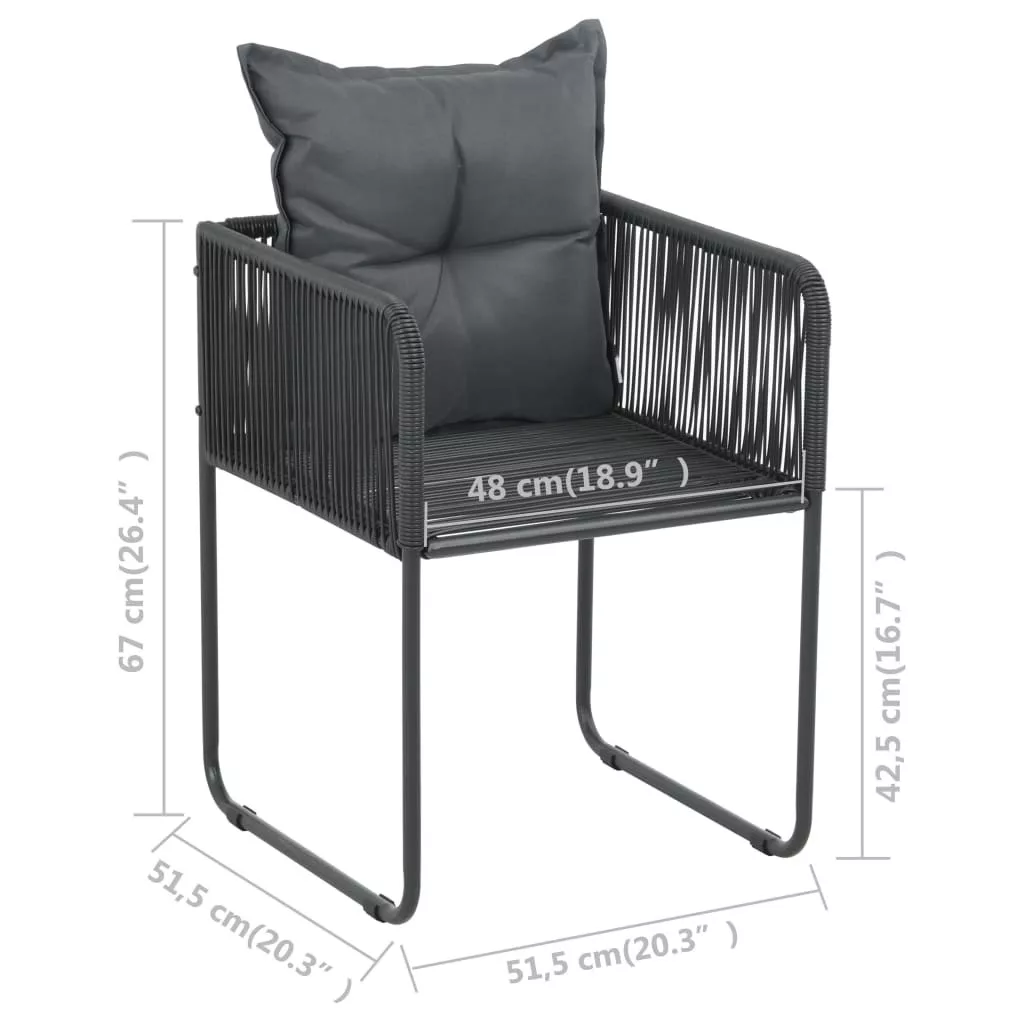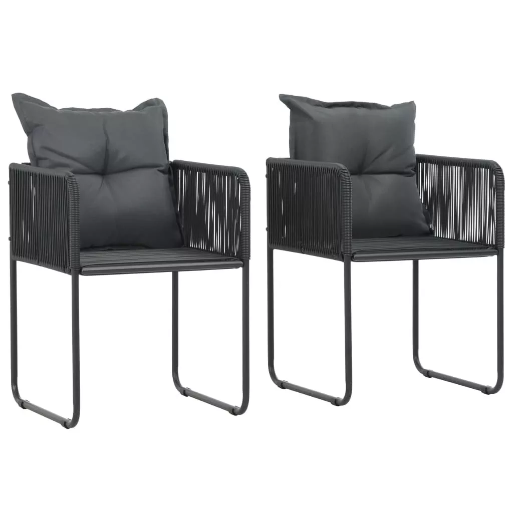 2 db fekete polyrattan kültéri szék párnával