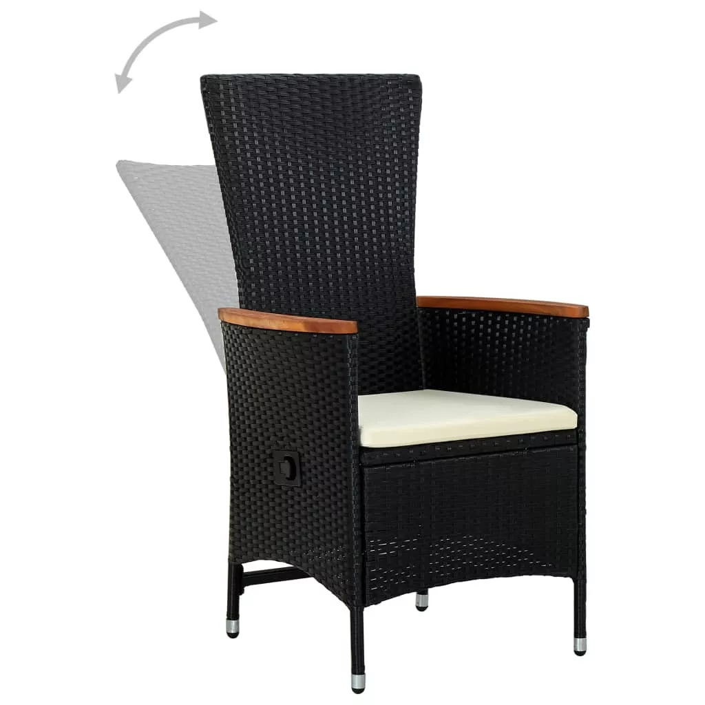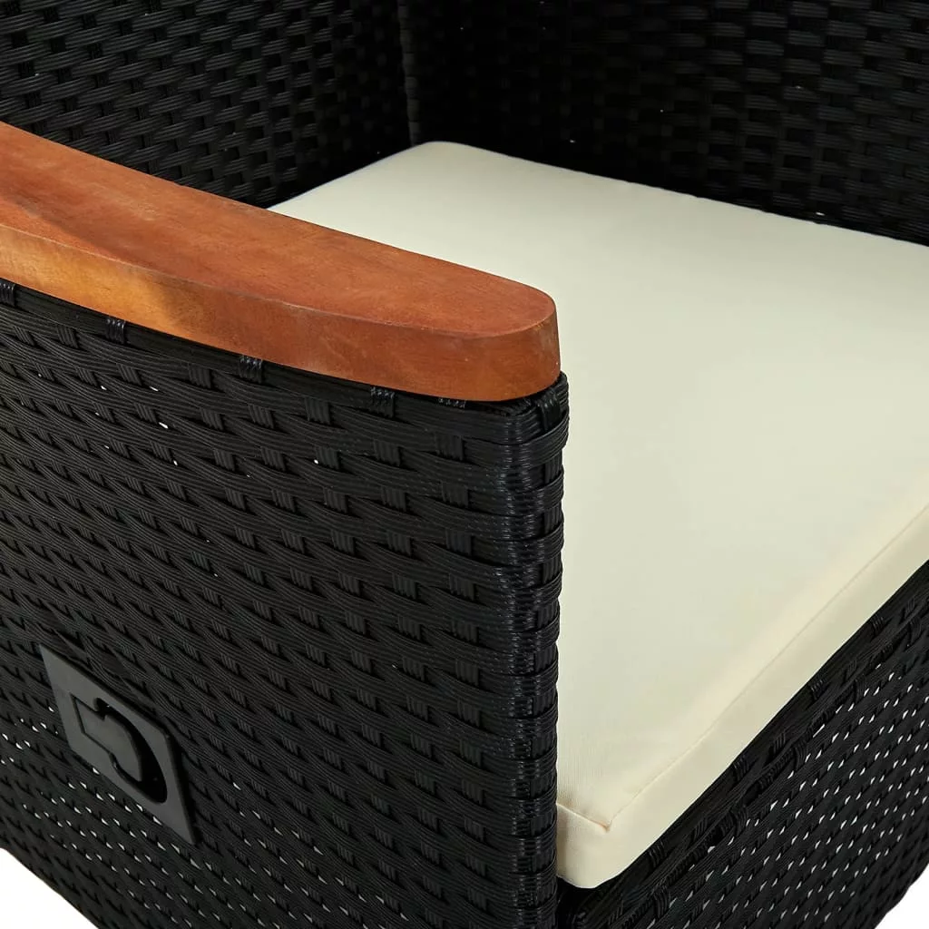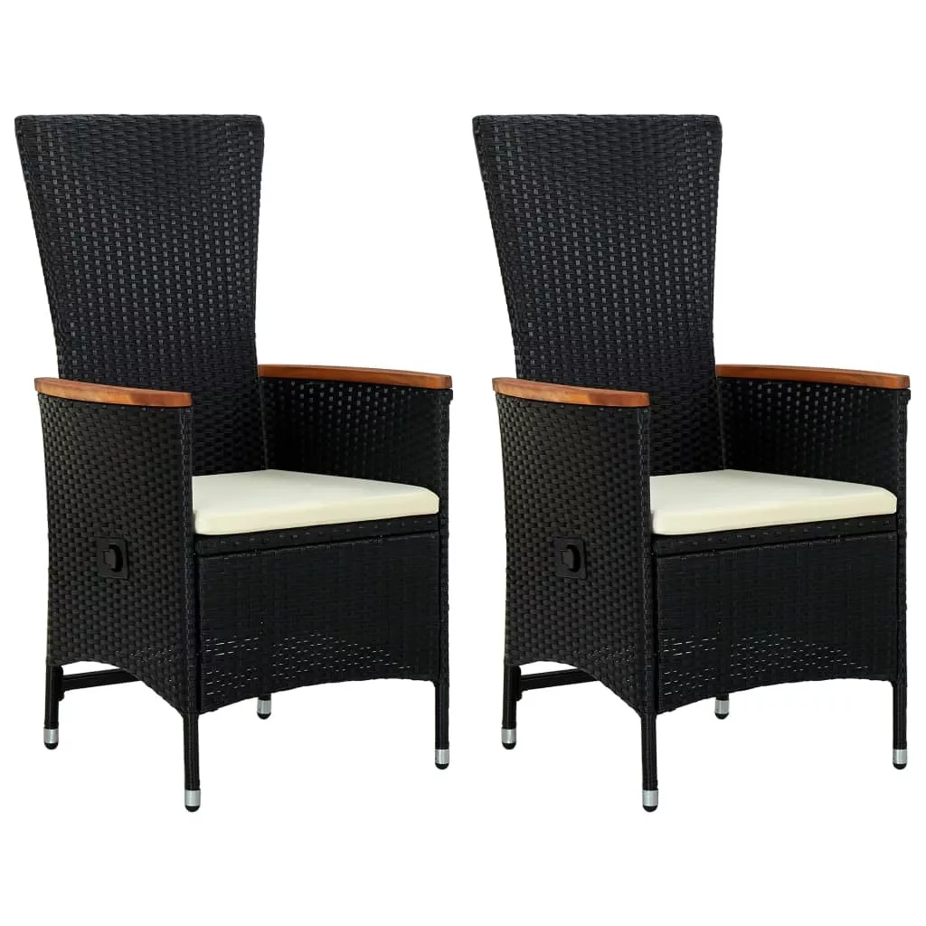 2 db fekete polyrattan kültéri szék párnával