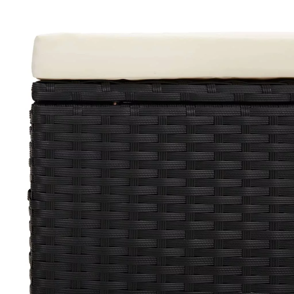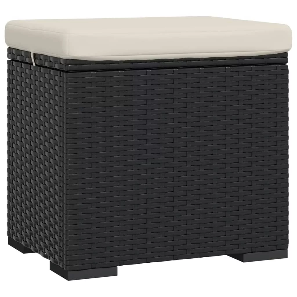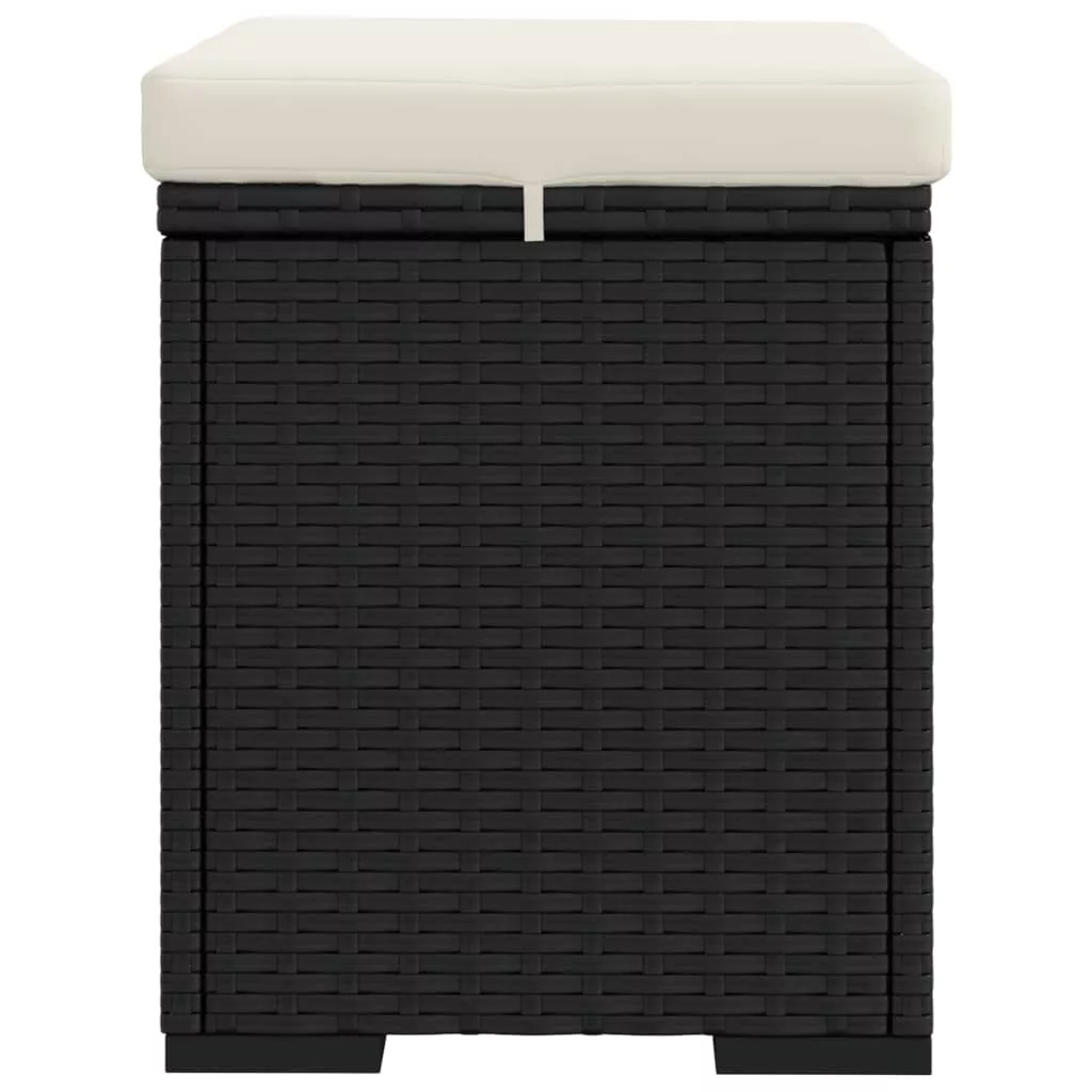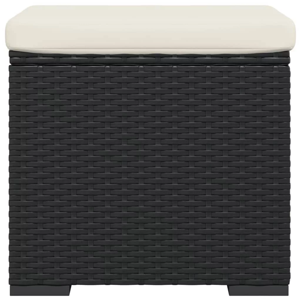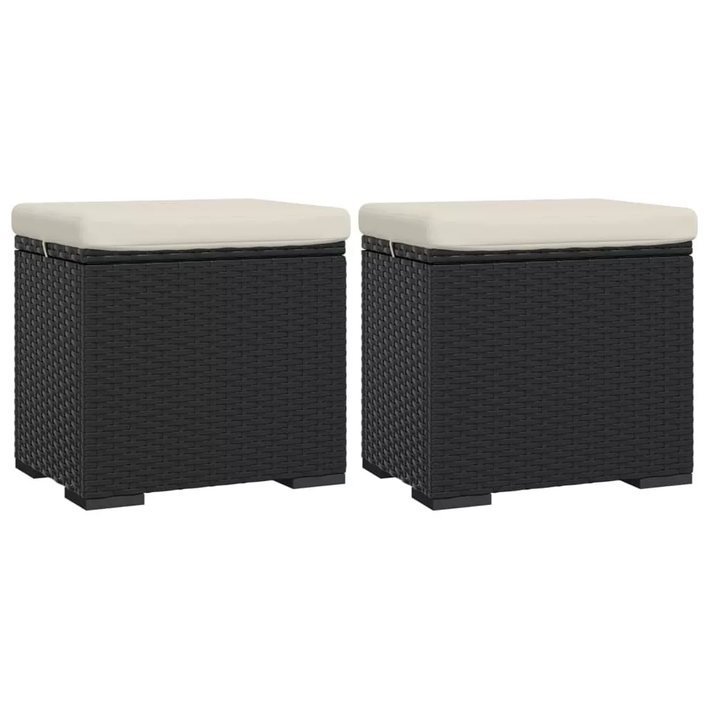 2 db fekete polyrattan zsámoly párnákkal 40 x 30 x 40 cm