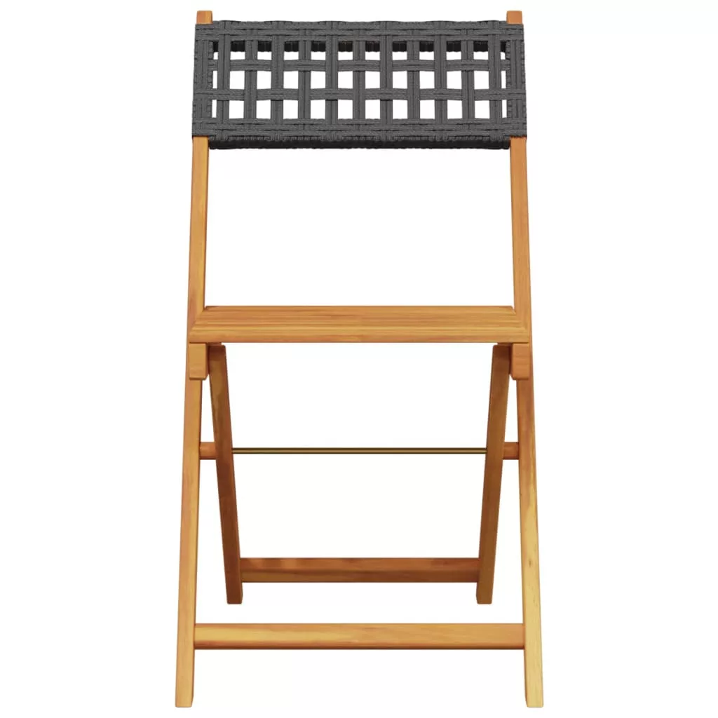 2 db fekete tömör akácfa és polyrattan bisztrószék