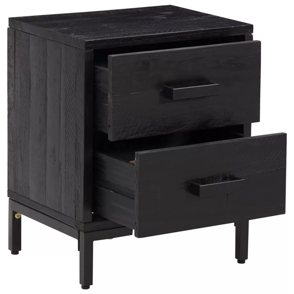 2 db fekete tömör fenyőfa éjjeliszekrény 36 x 30 x 45 cm