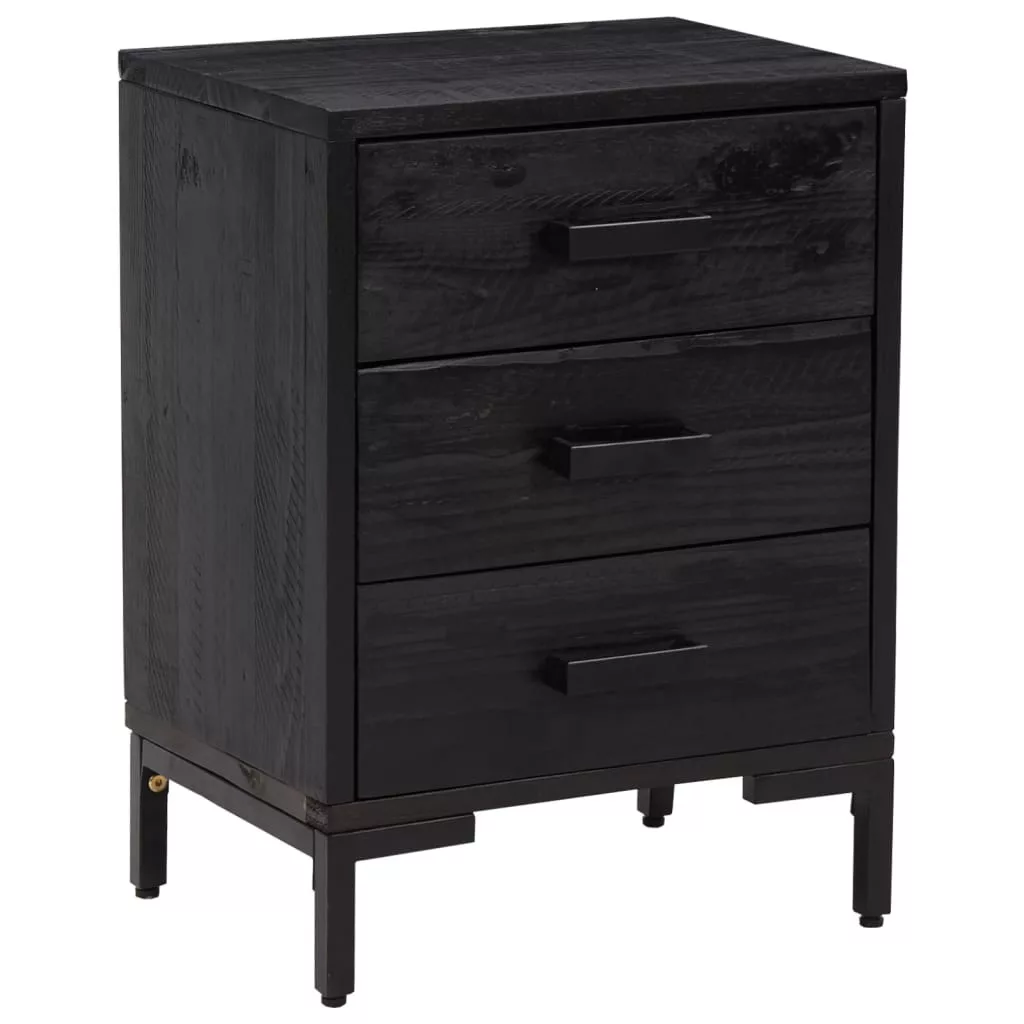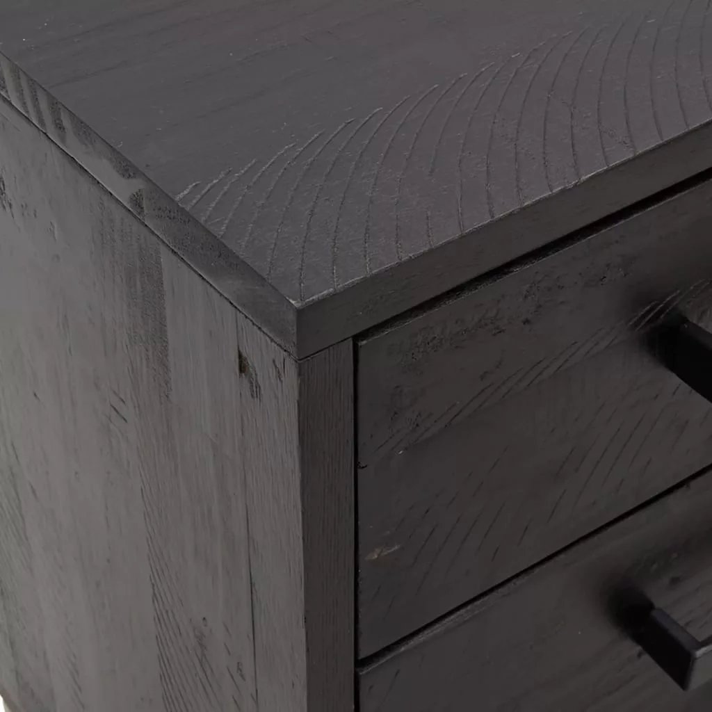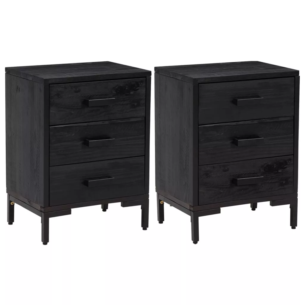 2 db fekete tömör fenyőfa éjjeliszekrény 40x30x55 cm