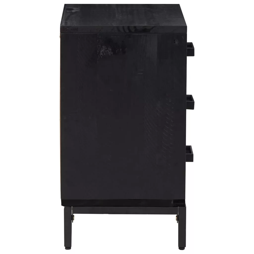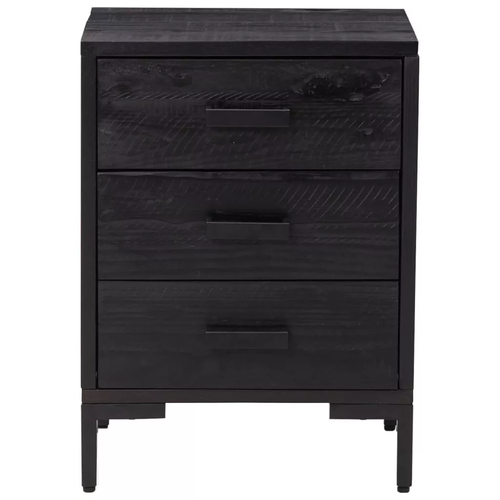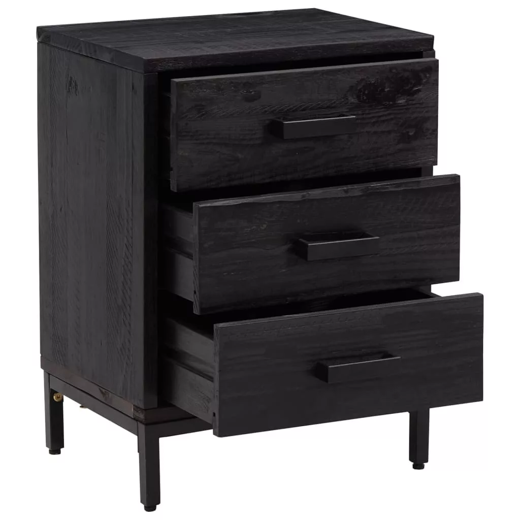 2 db fekete tömör fenyőfa éjjeliszekrény 40x30x55 cm