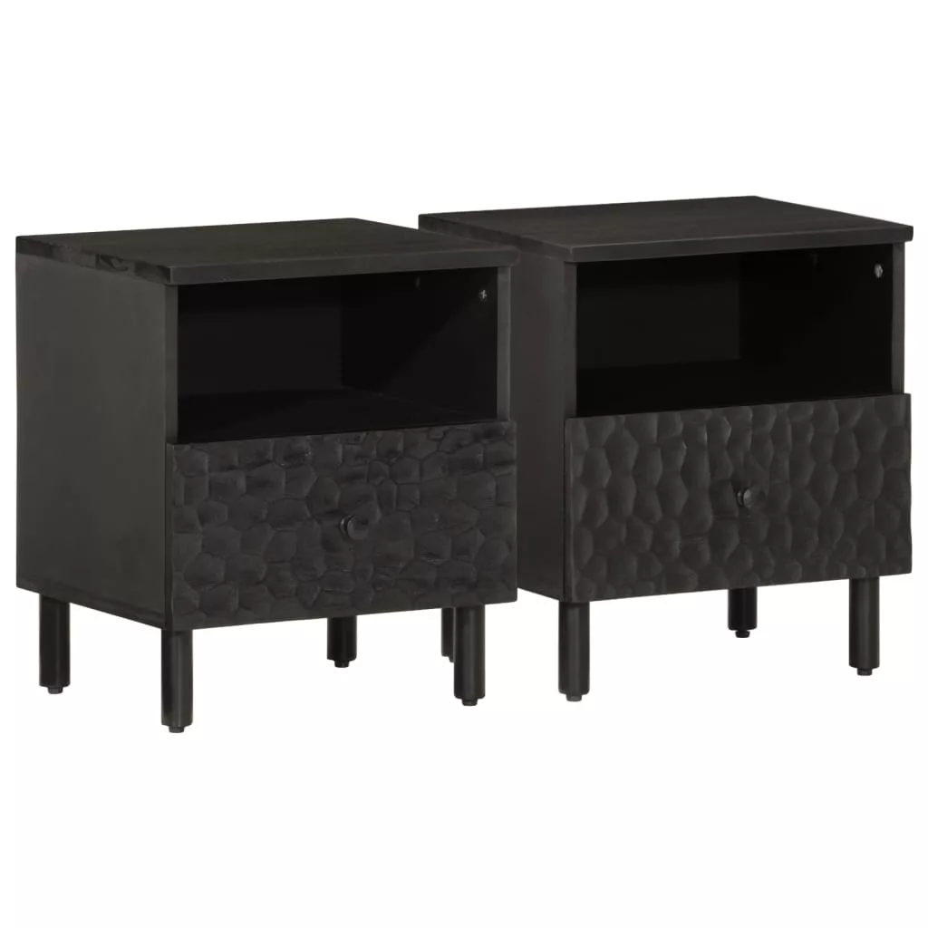 2 db fekete tömör mangófa éjjeliszekrény 40 x 33 x 46 cm