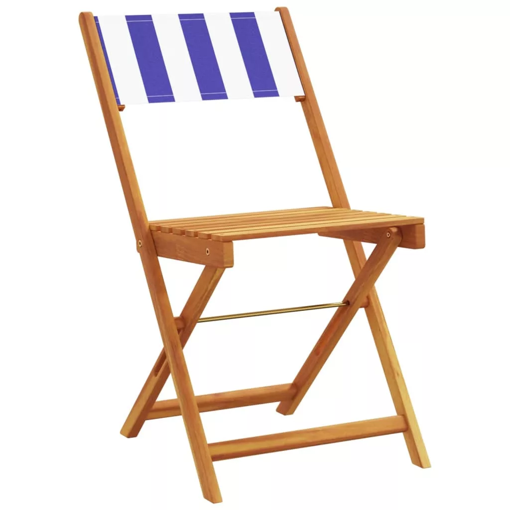 2 db kék és fehér tömör akácfa és szövet bisztrószék