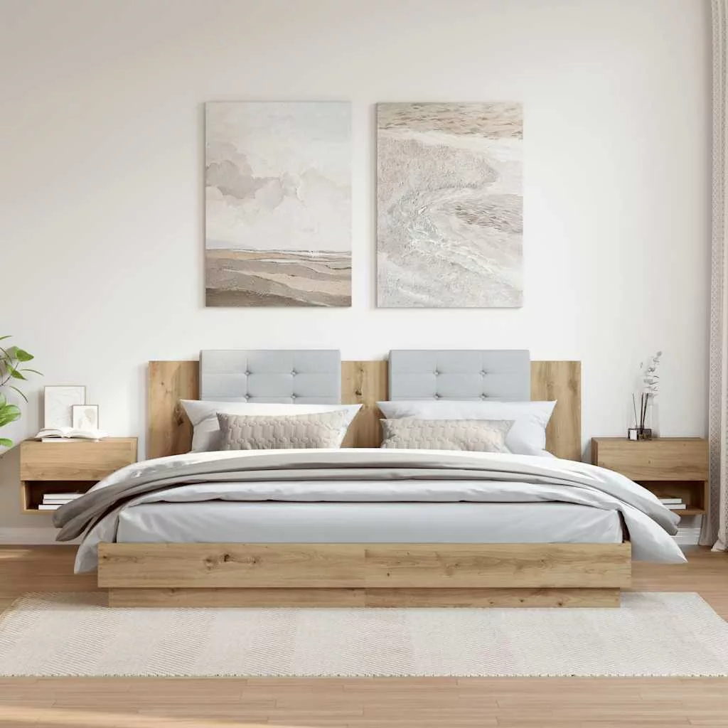 2 db kézműves tölgy színű falra szerelhető éjjeliszekrény