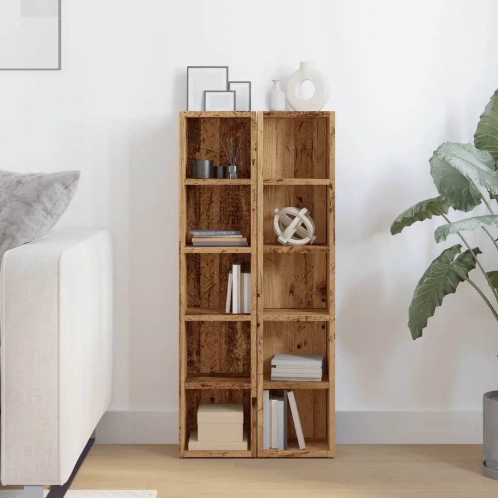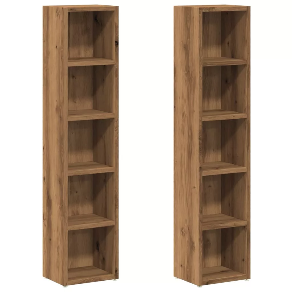 2 db kézműves tölgy színű szerelt fa CD-szekrény 21x16x93,5 cm