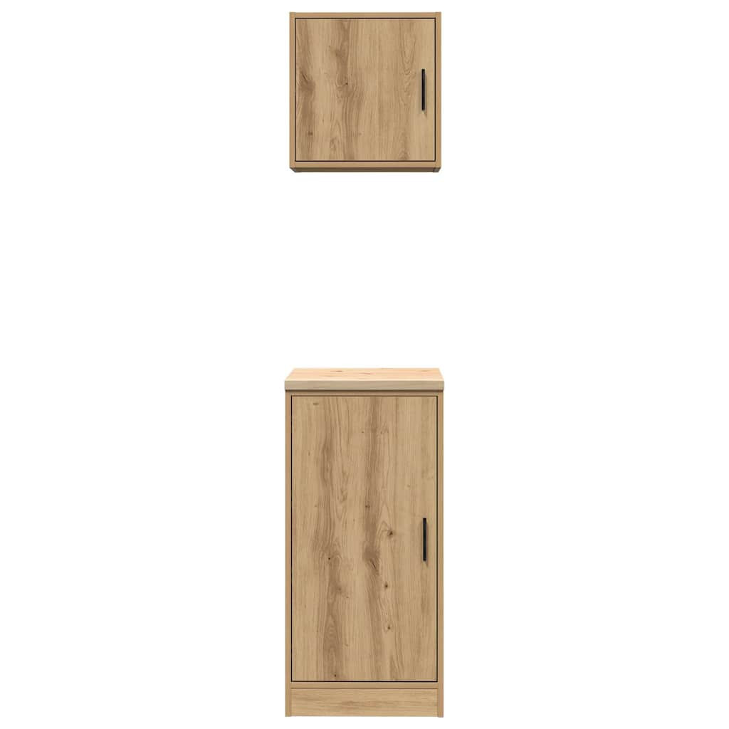 2 db kézműves tölgy színű szerelt fa garázs szekrények