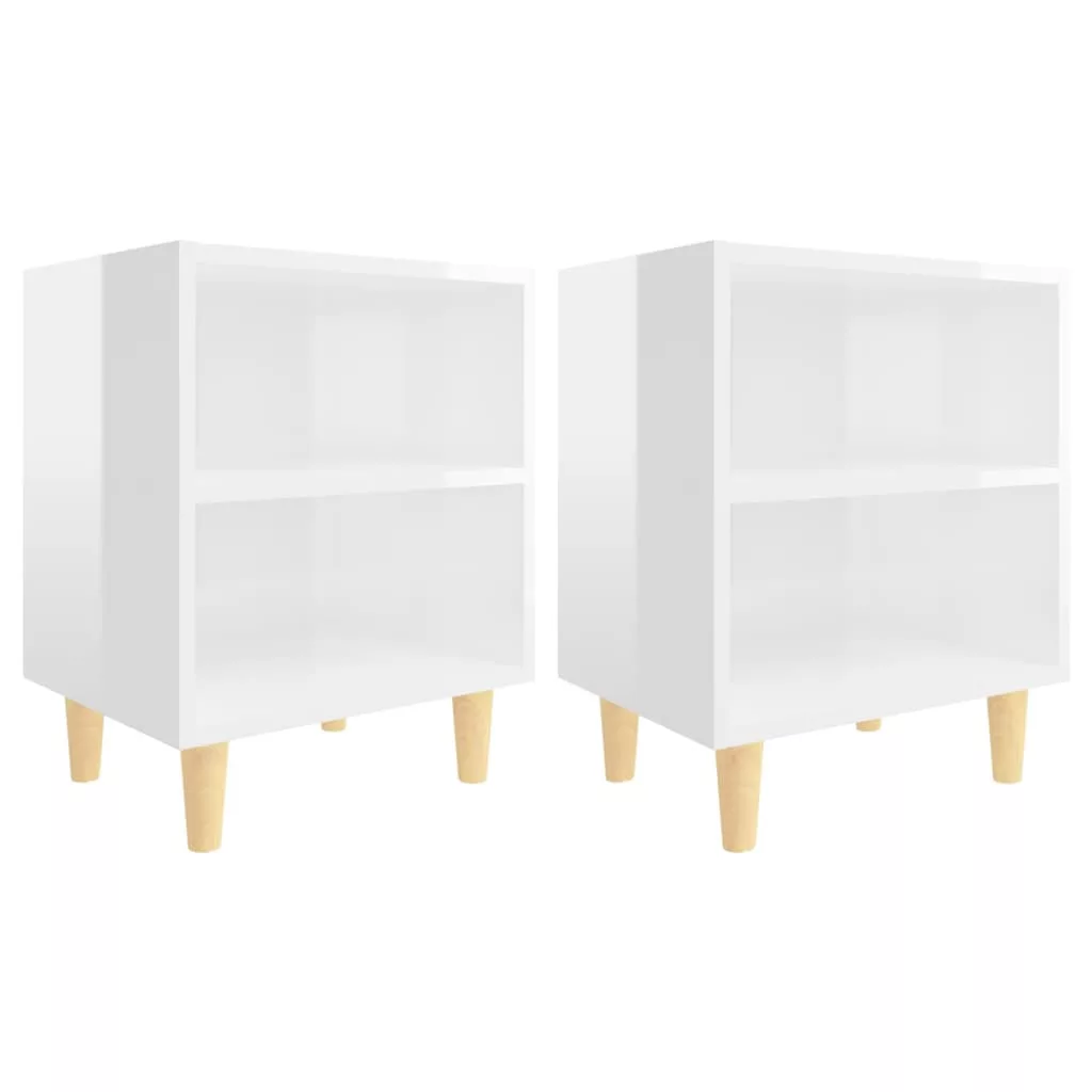 2 db magasfényű fehér éjjeliszekrény fa lábakkal 40x30x50 cm