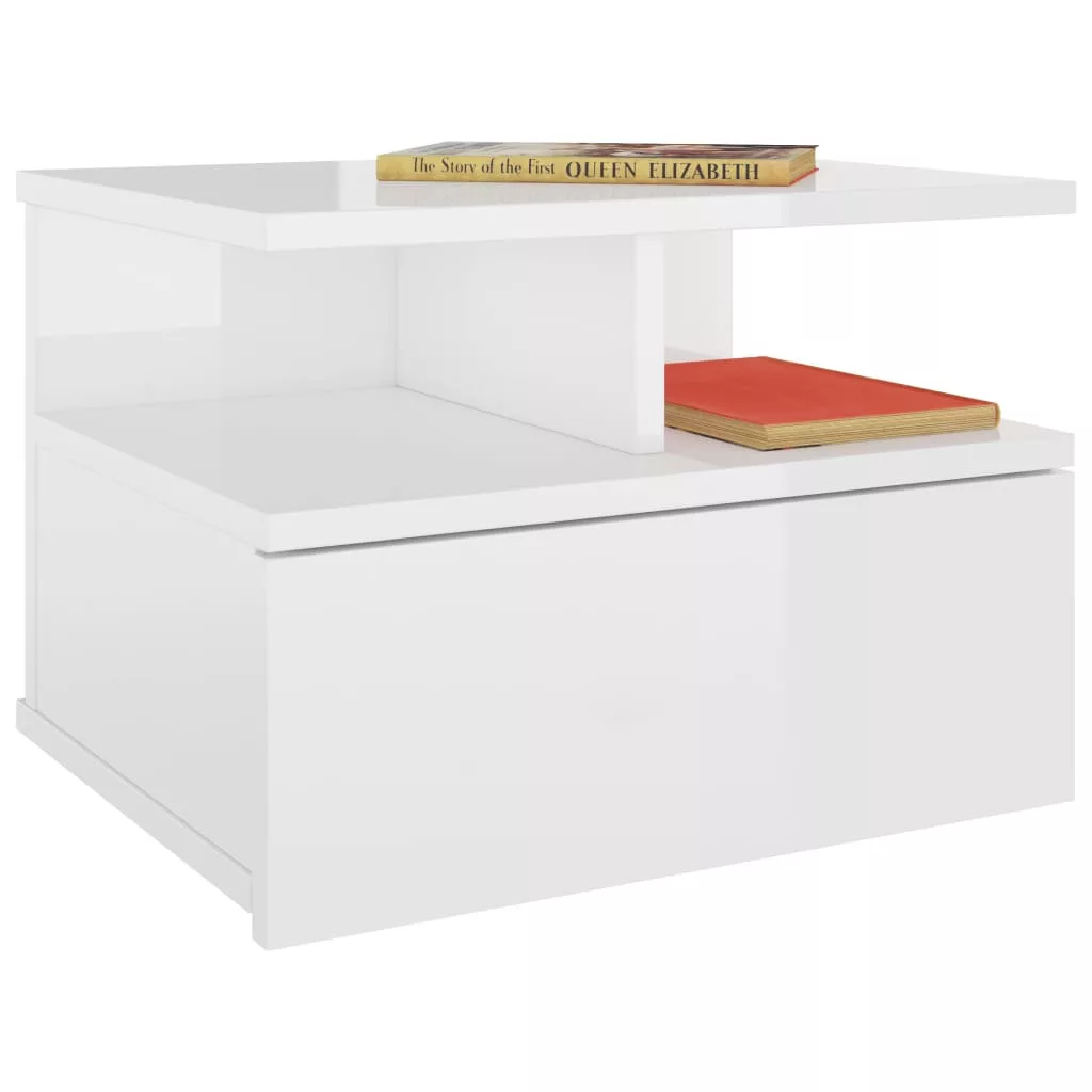 2 db magasfényű fehér szerelt fa lebegő éjjeliszekrény