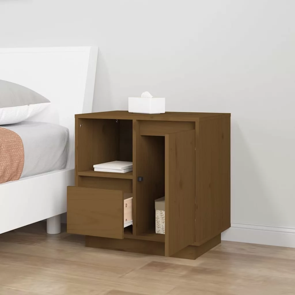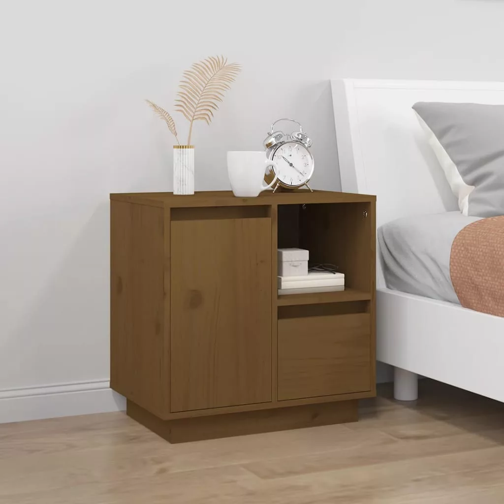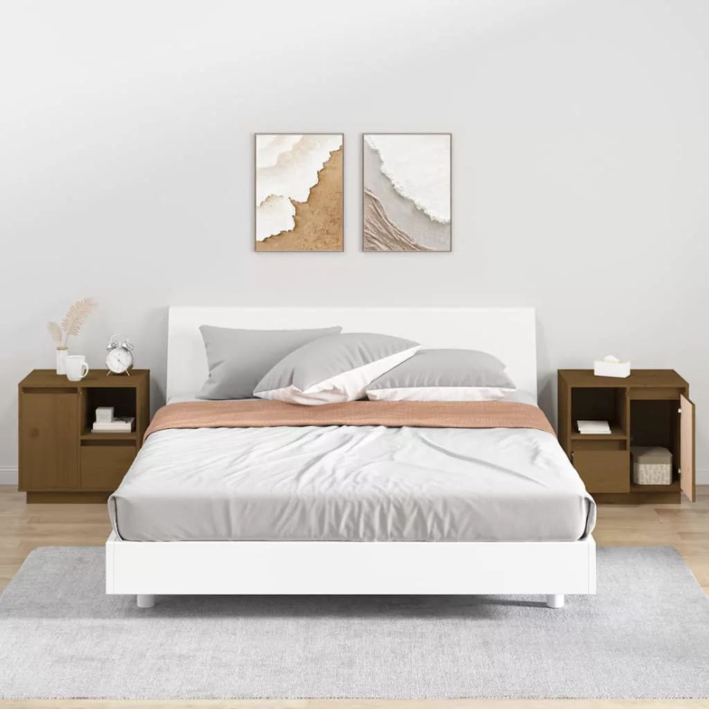 2 db mézbarna tömör fenyőfa éjjeliszekrény 50 x 34 x 50 cm