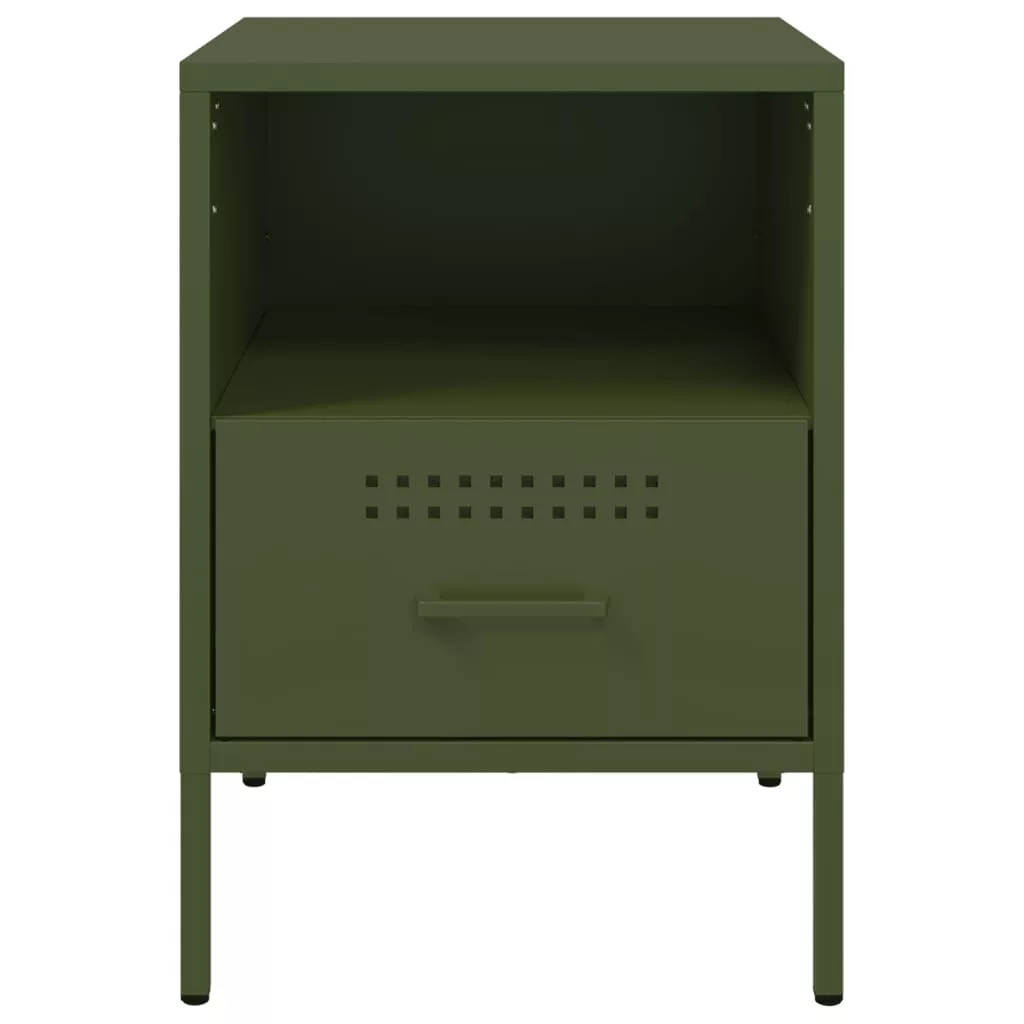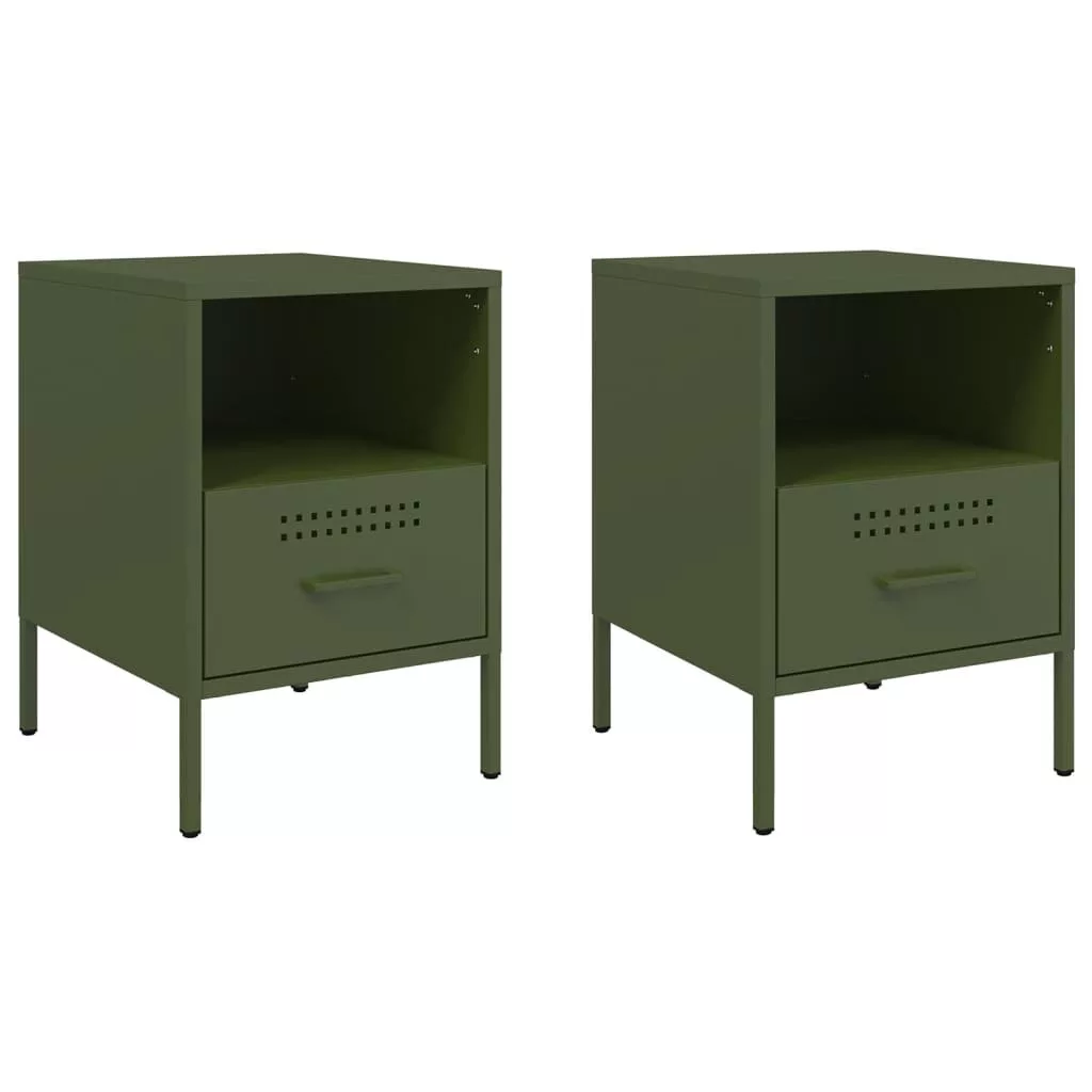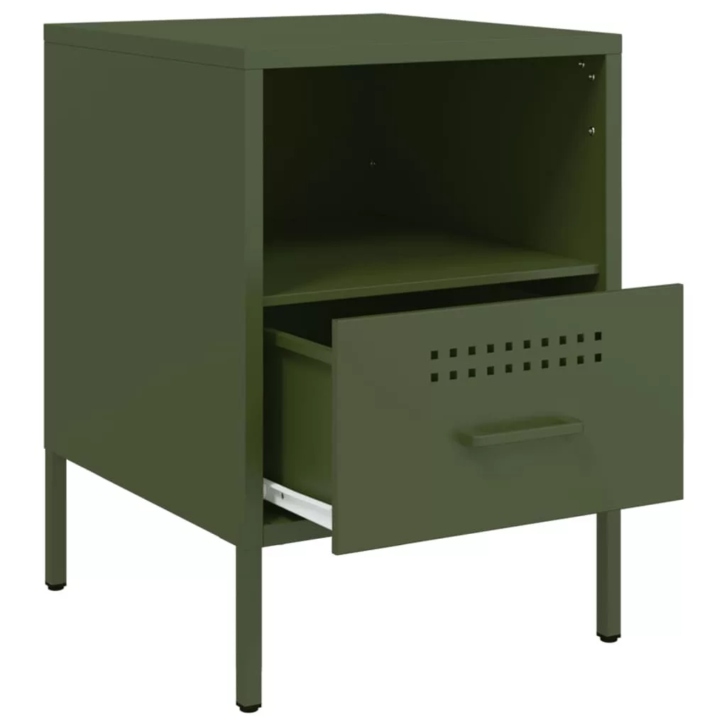 2 db olívazöld acél éjjeliszekrény 36 x 39 x 50,5 cm