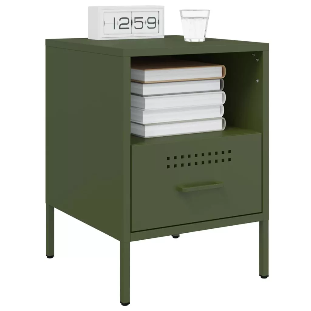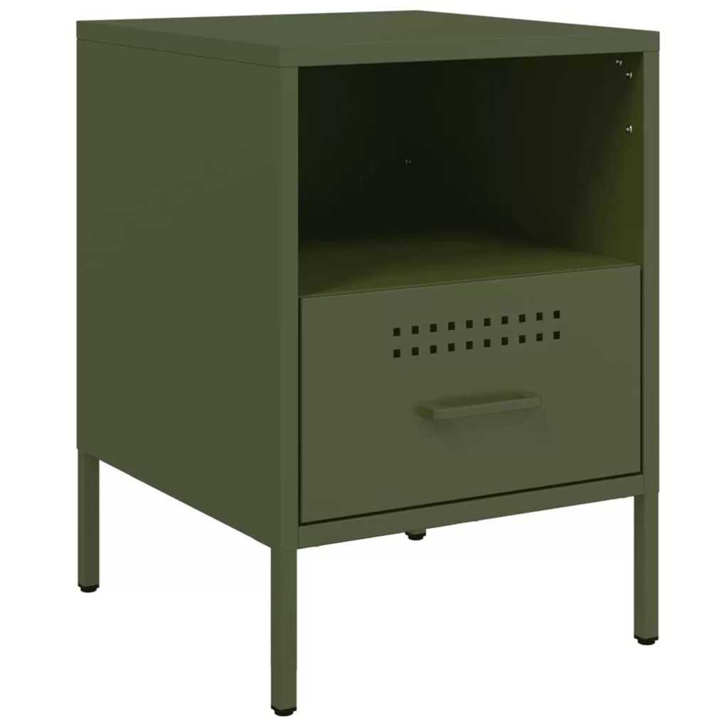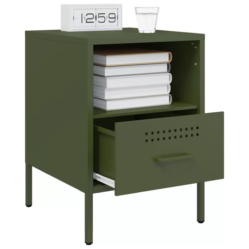 2 db olívazöld acél éjjeliszekrény 36 x 39 x 50,5 cm