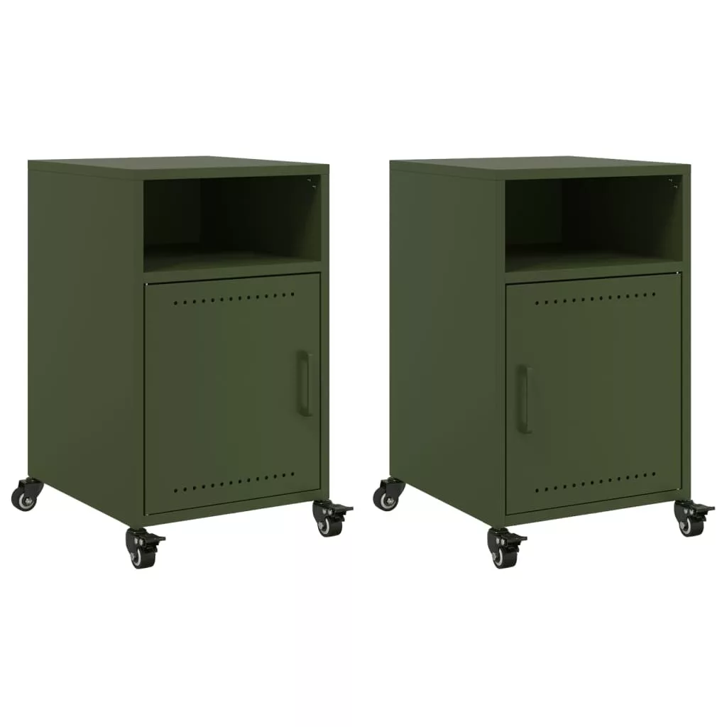 2 db olívazöld acél éjjeliszekrény 36x39x59 cm