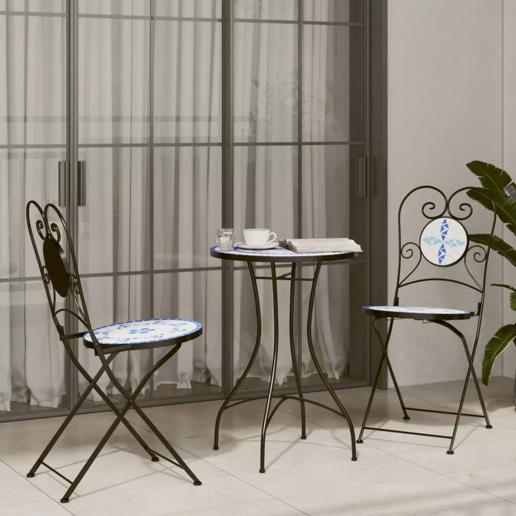 Ezek a mozaikos bisztrószékek kertje, erkélye vagy terasza központi elemei lesznek. Stabil és könnyen tisztítható lap: Ezek a kerti székek kerámialappal rendelkeznek, amely masszív és tartós, és nedves ruhával könnyen tisztítható.Robusztus és stabil váz: A porszórt vas váznak köszönhetően az összecsukható székek erősek és stabilak a mindennapi kültéri használathoz.Összecsukható kialakítás: A bisztró étkezőszékek a helytakarékosság érdekében használaton kívül összecsukhatók.Mozaikmintás kialakítás: A kültéri székek a mozaikmintás kialakításukkal mediterrán hangulatot teremtenek bel- vagy kültéri környezetében. Jó tudni:A kültéri bútor szépségének megőrzése érdekében javasoljuk, hogy vízálló huzattal fedje be. Maximum 110 kg ülésenként.