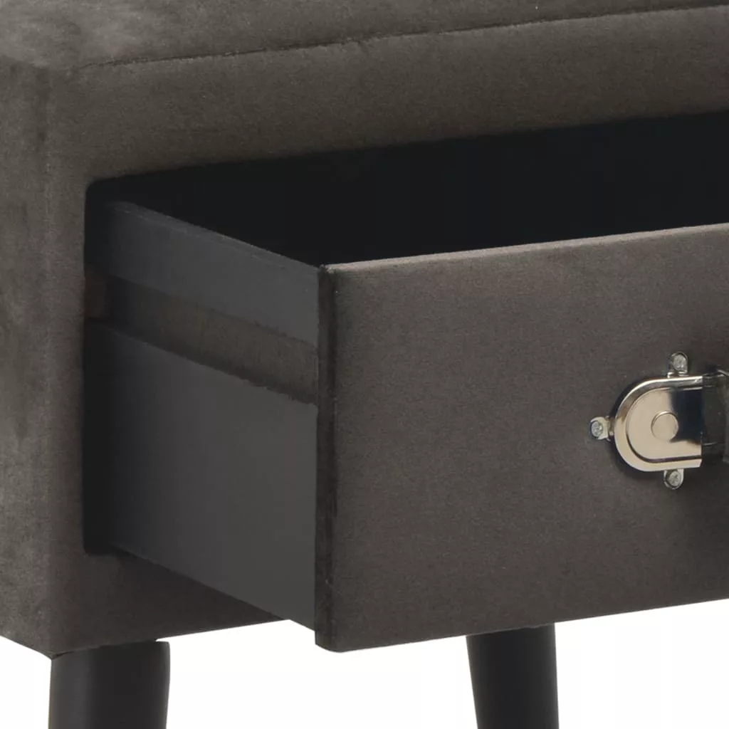 Ez az éjjeliszekrény elegáns dizájnjával kiváló kiegészítője lehet otthonának. Ez a tömör fenyőfából és bársonyból készült éjjeliszekrény rendkívül tartós és stabil. A kompakt bársonyszekrény finoman betolható fiókkal rendelkezik, és elegendő helyet biztosít kisebb tárgyak rendezetten tartására, elérhető távolságban. Emellett ágy melletti állványként, éjjeliszekrényként, fiókos szekrényként stb. is használható. Az éjjeliszekrény könnyen összeszerelhető. A szállítmány 2 éjjeliszekrényt tartalmaz. Maksimális 110 kg ülésenként. Legyen tudatában a nyílt tűz és más erős hőforrások kockázatának a termék környezetében.