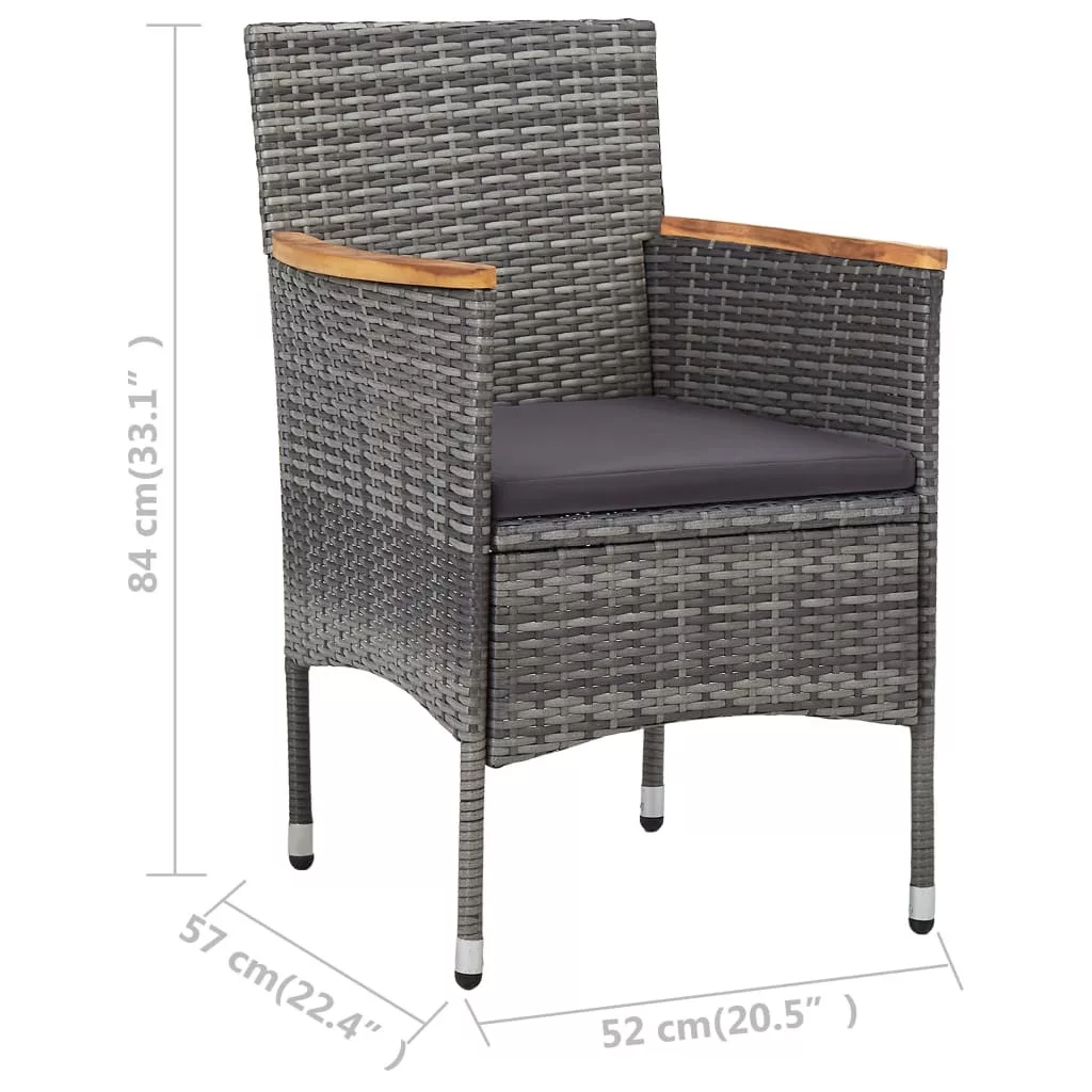 2 db szürke kerti polyrattan étkezőszék