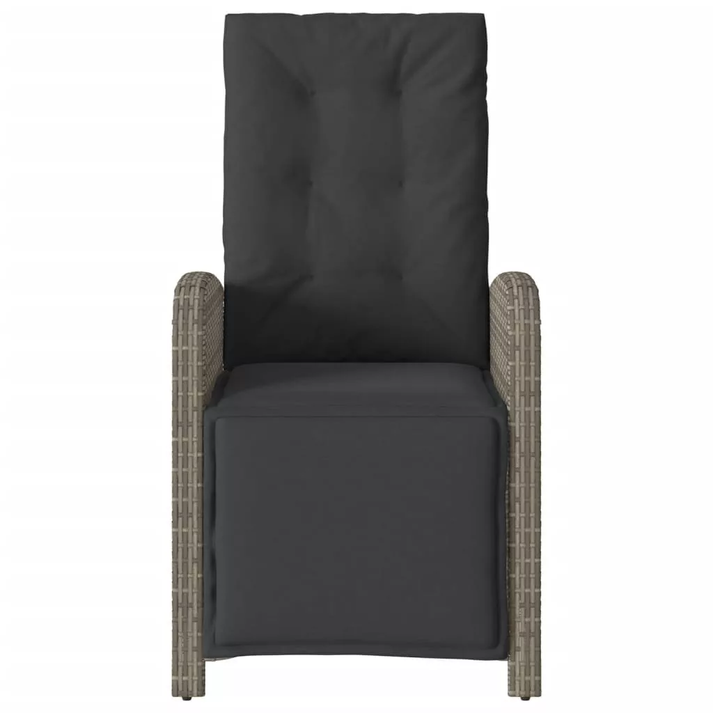 2 db szürke polyrattan dönthető kerti szék lábtartóval