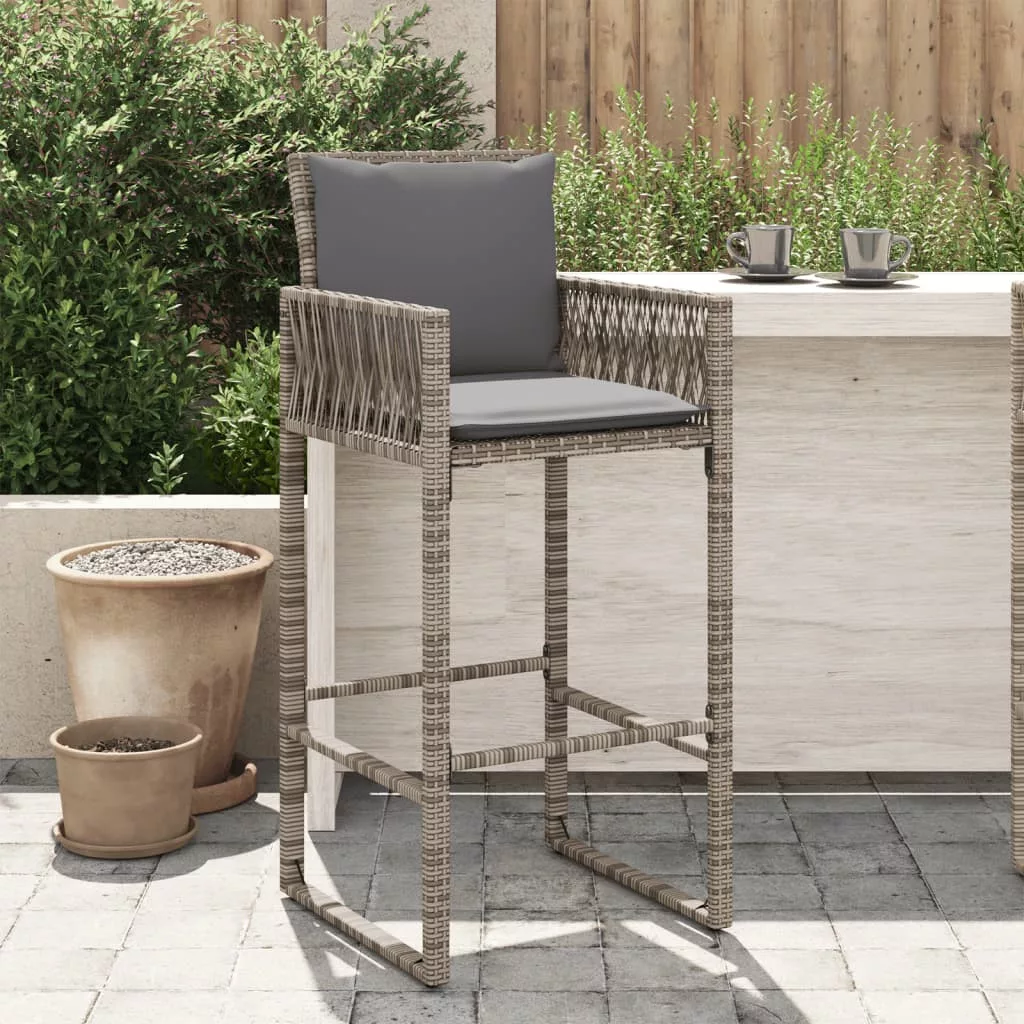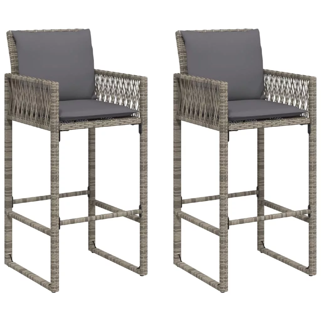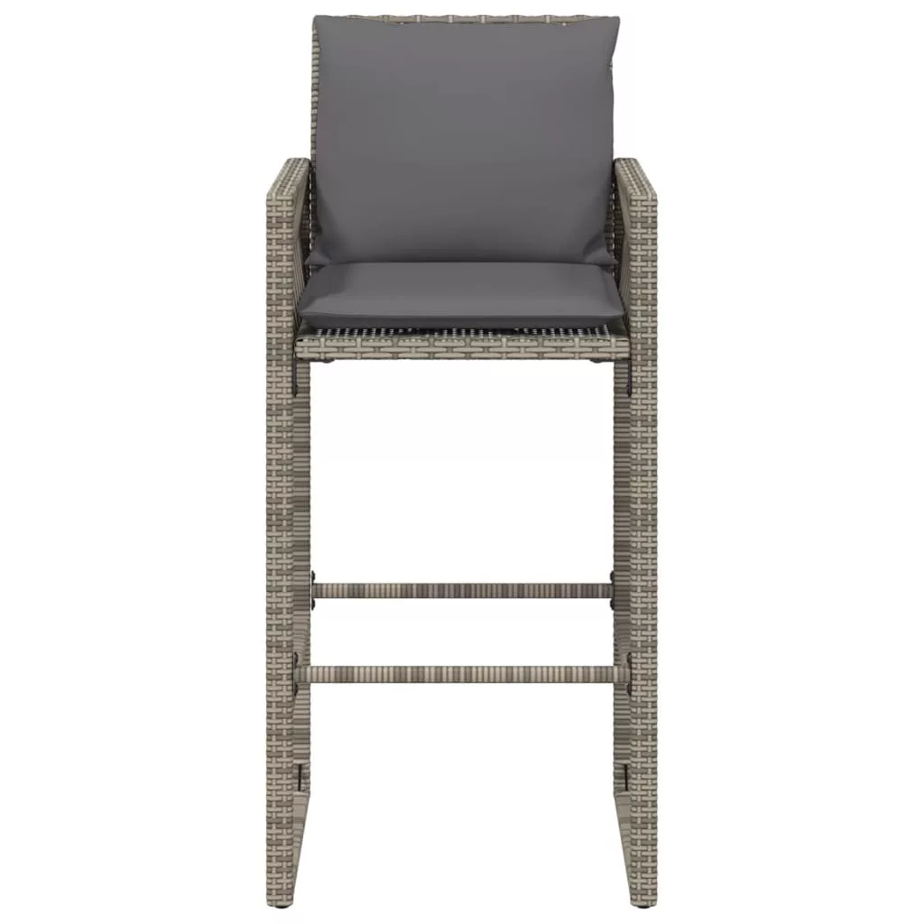 2 db szürke polyrattan kerti bárszék párnával