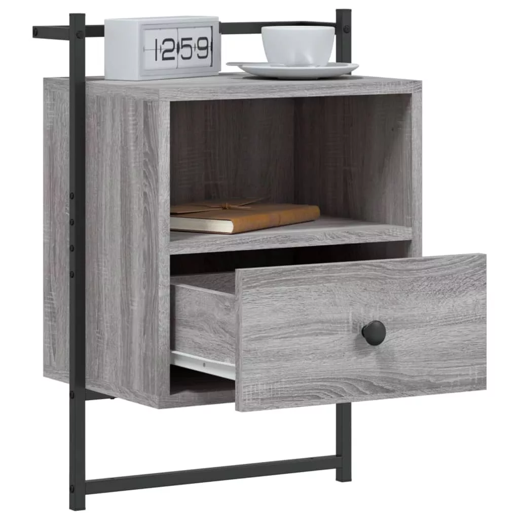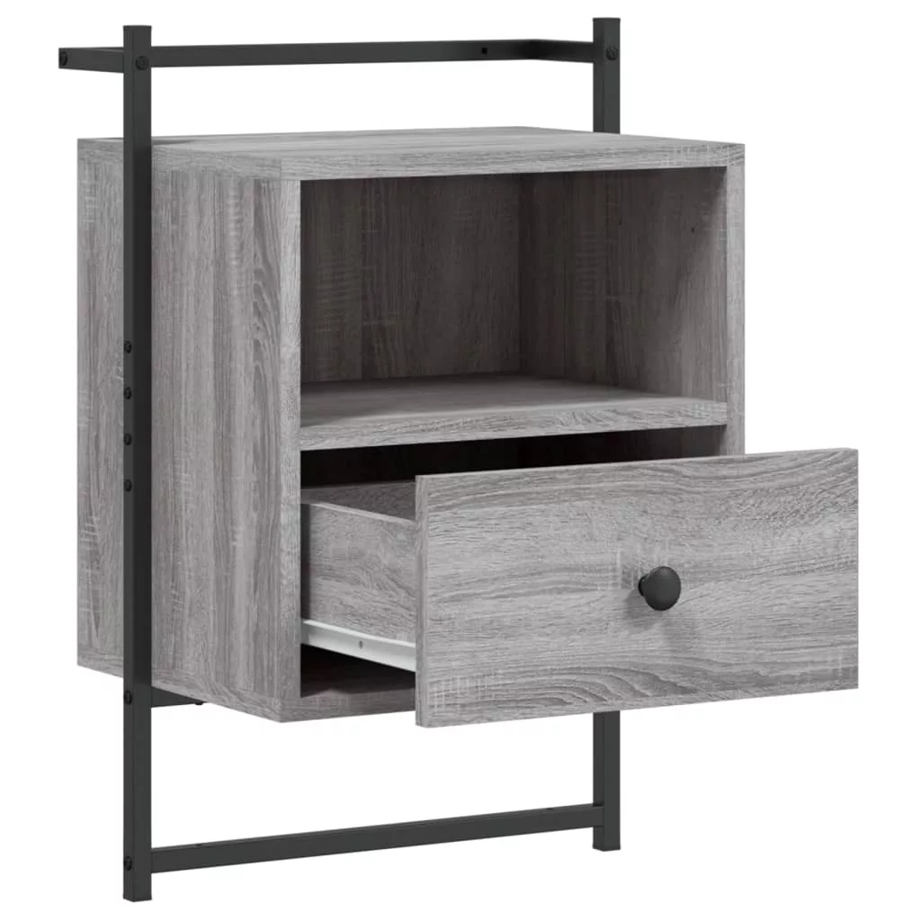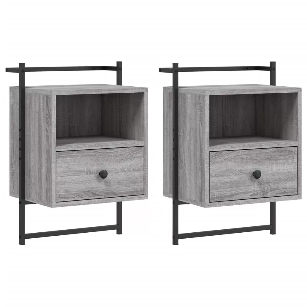 2 db szürke sonoma szerelt fa fali éjjeliszekrény 40x30x61 cm