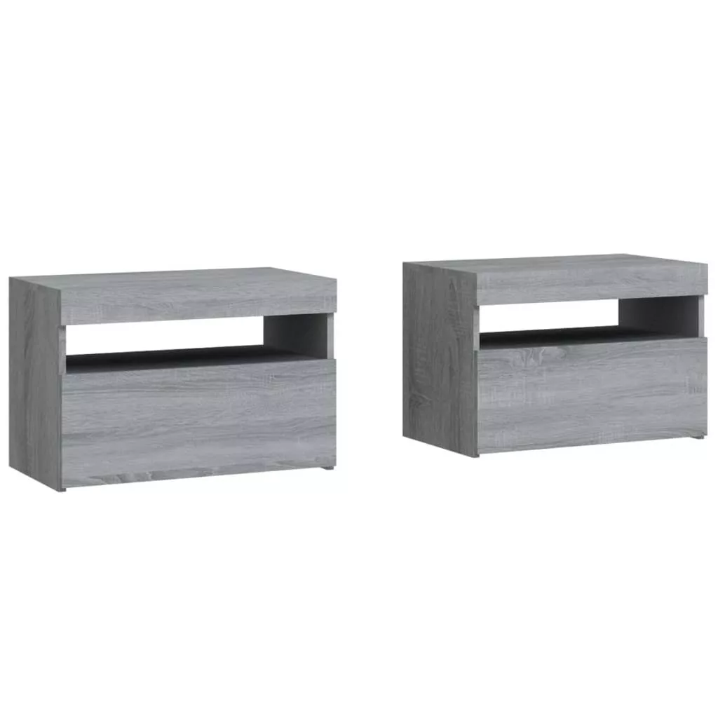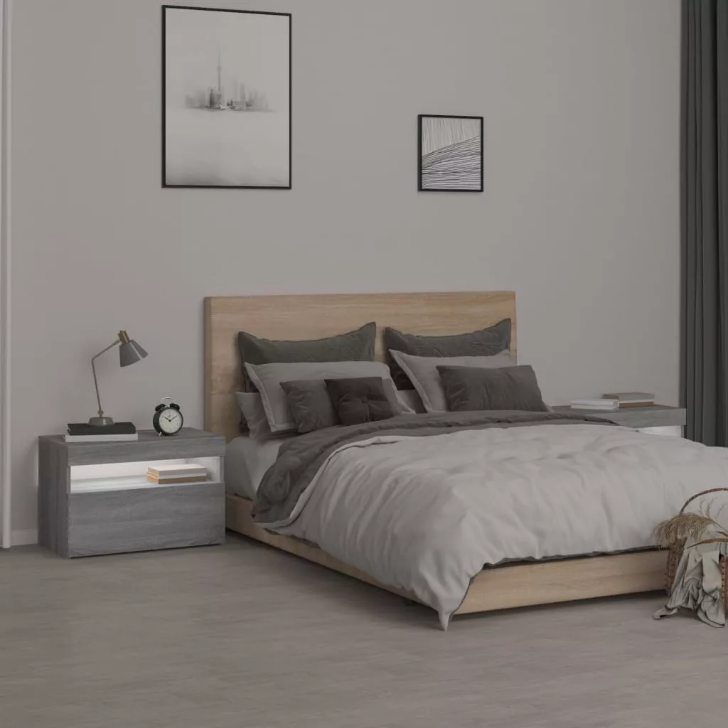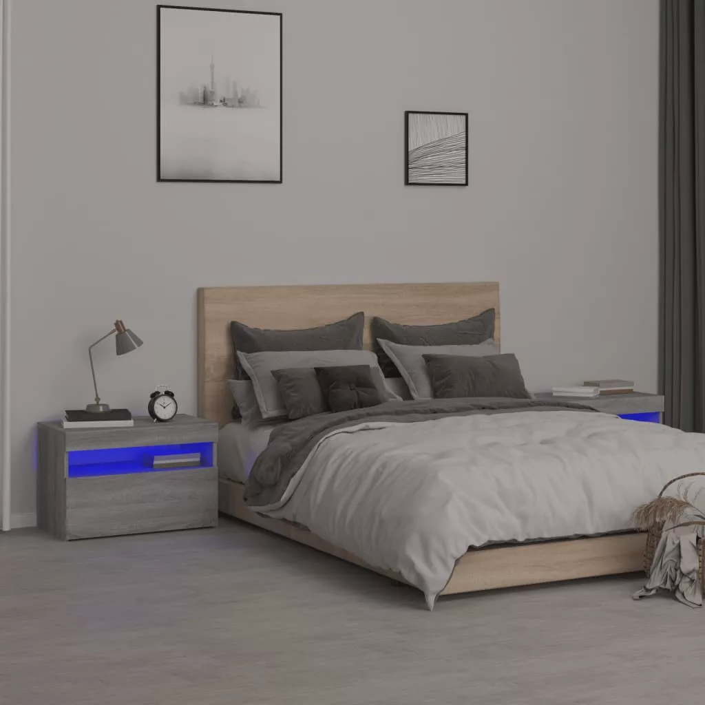 2 db szürke sonoma színű LED-es éjjeliszekrény 60x35x40 cm