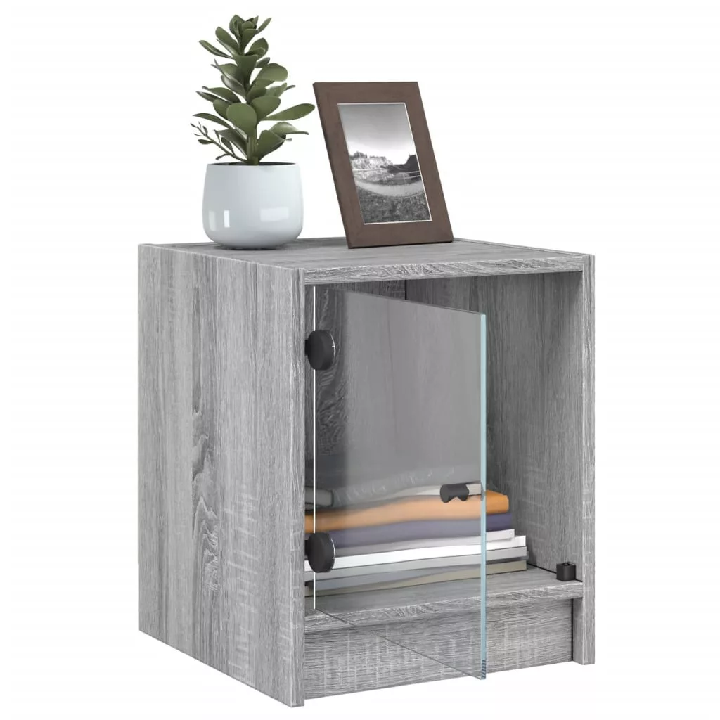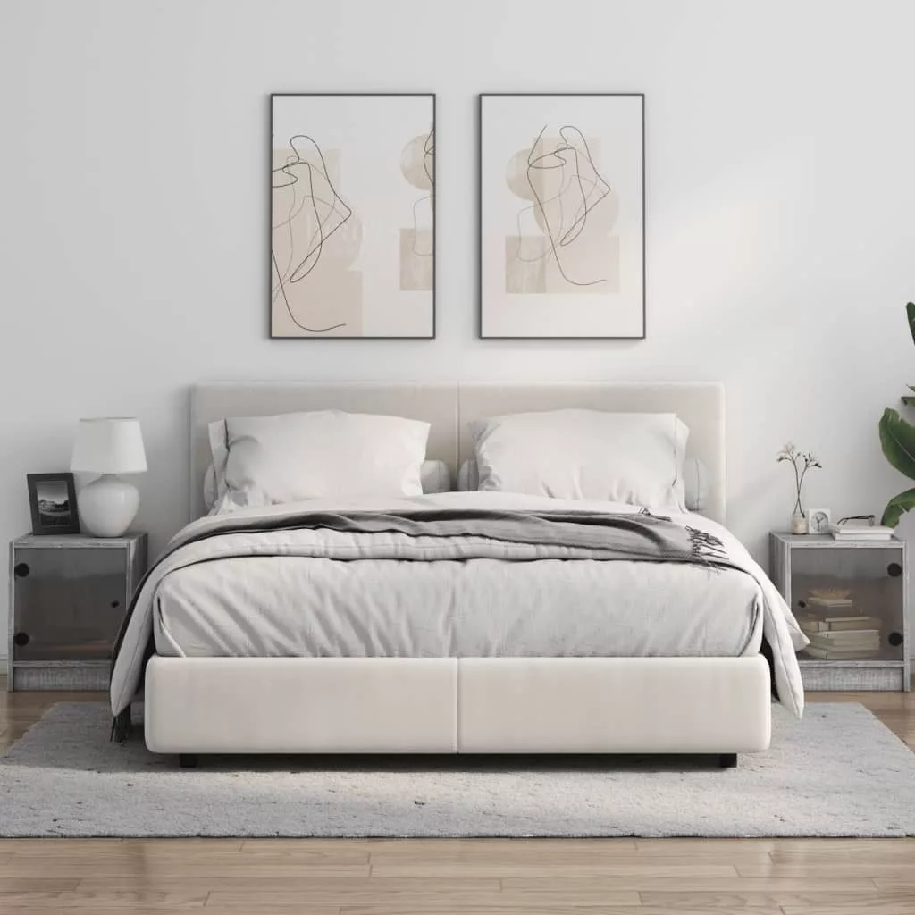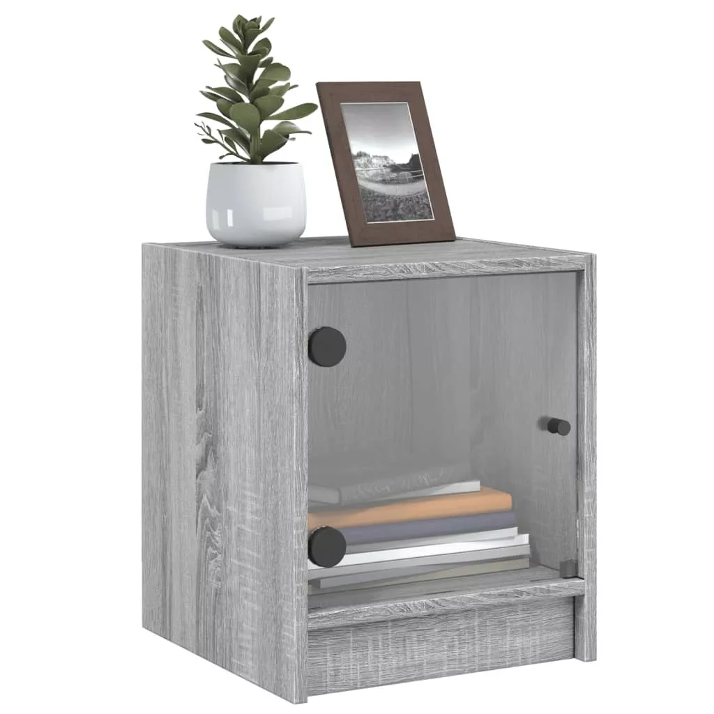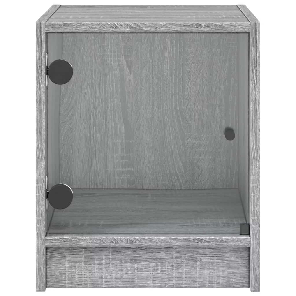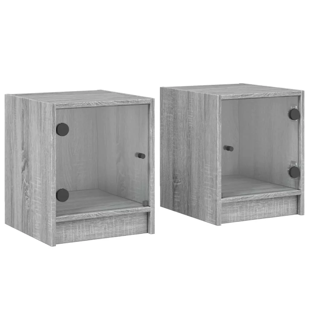 2 db szürke sonoma színű éjjeliszekrény üvegajtóval 35x37x42 cm