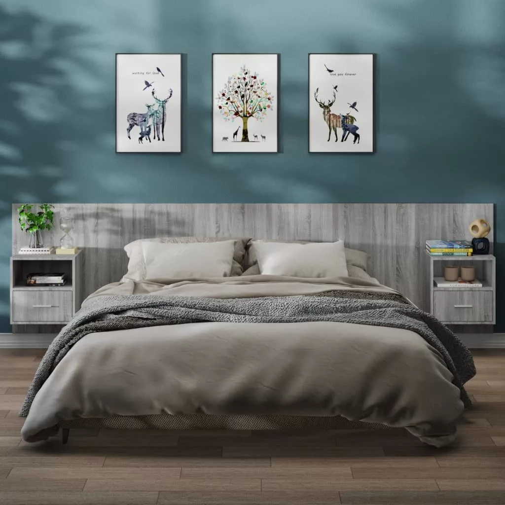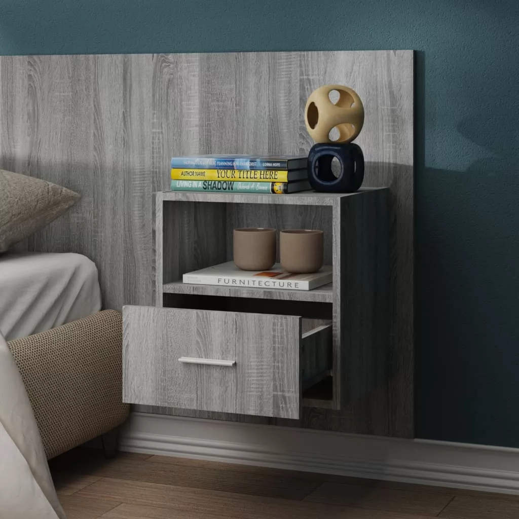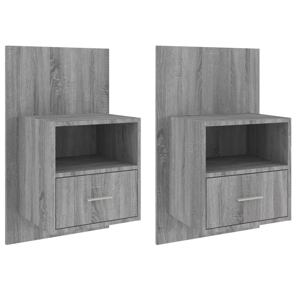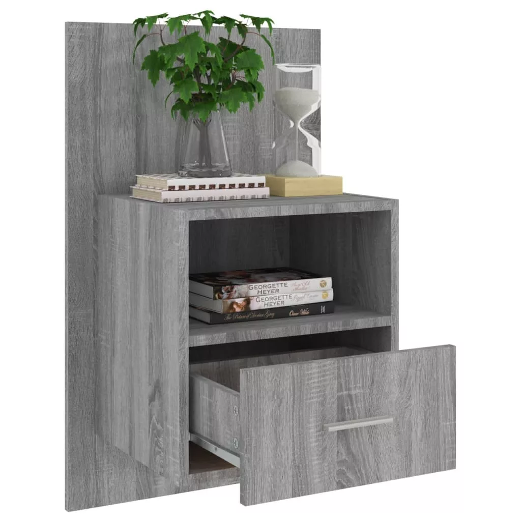 2 db szürke sonoma tölgy színű falra szerelhető éjjeliszekrény